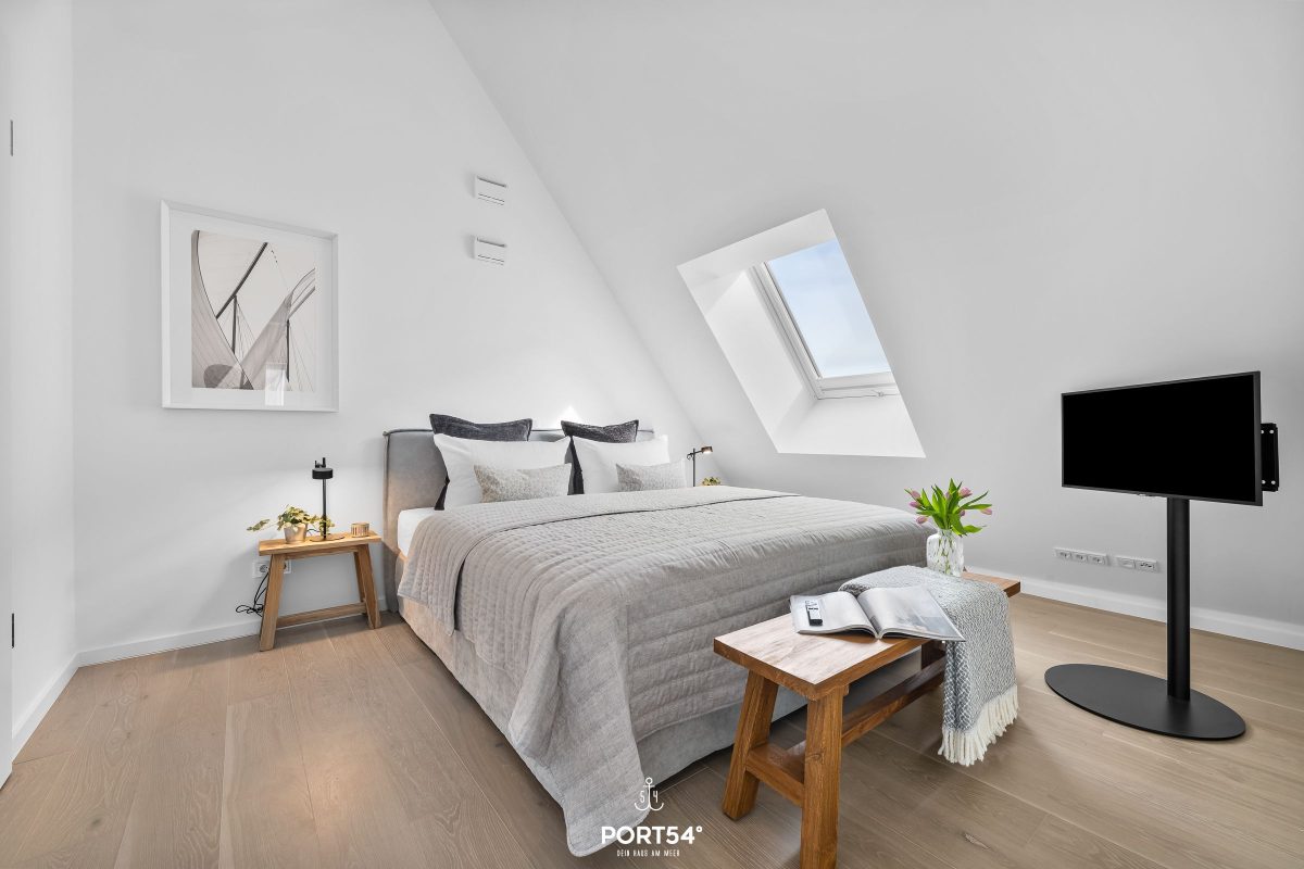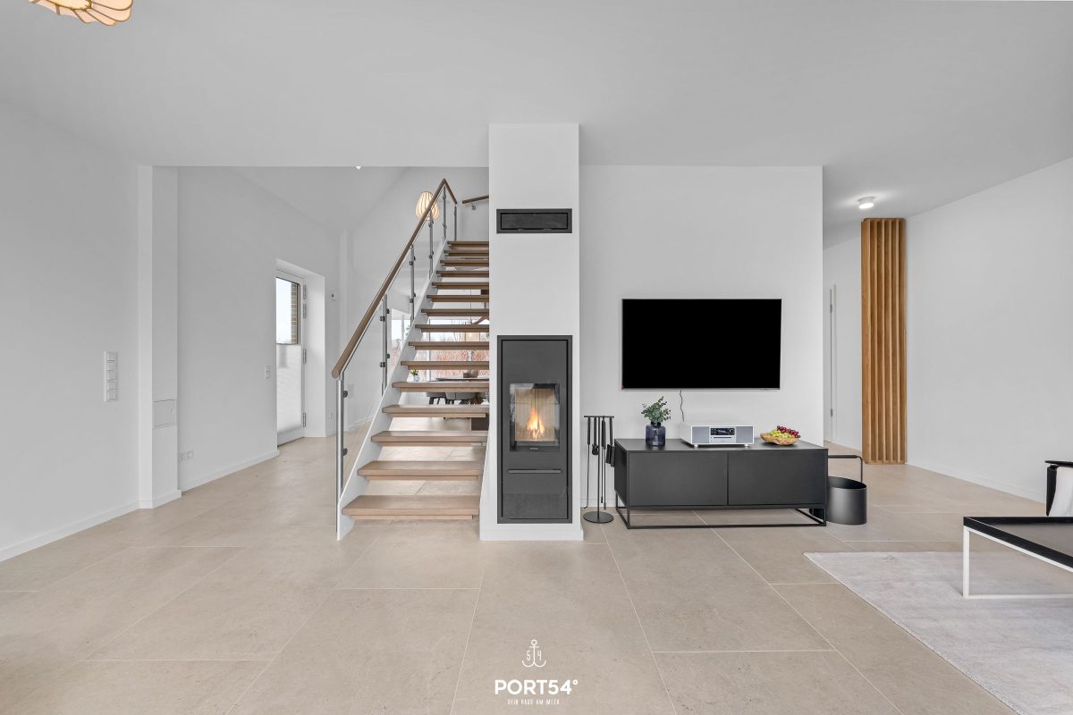 Besondere Wohlfühlmomente bietet die private Finnische Sauna mit angrenzender Dusche, während die Fußbodenheizung im gesamten Haus für ein angenehmes Raumklima sorgt. Die Badezimmer sind hochwertig ausgestattet und verfügen über zwei bodengleiche Duschen. Ergänzt wird dies durch moderne Waschbecken, WCs, Spiegel, Kosmetikspiegel und Haartrockner. Bettwäsche, Handtücher sowie eine Erstausstattung sind bereits inklusive.
