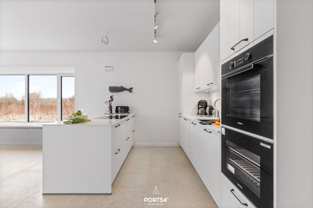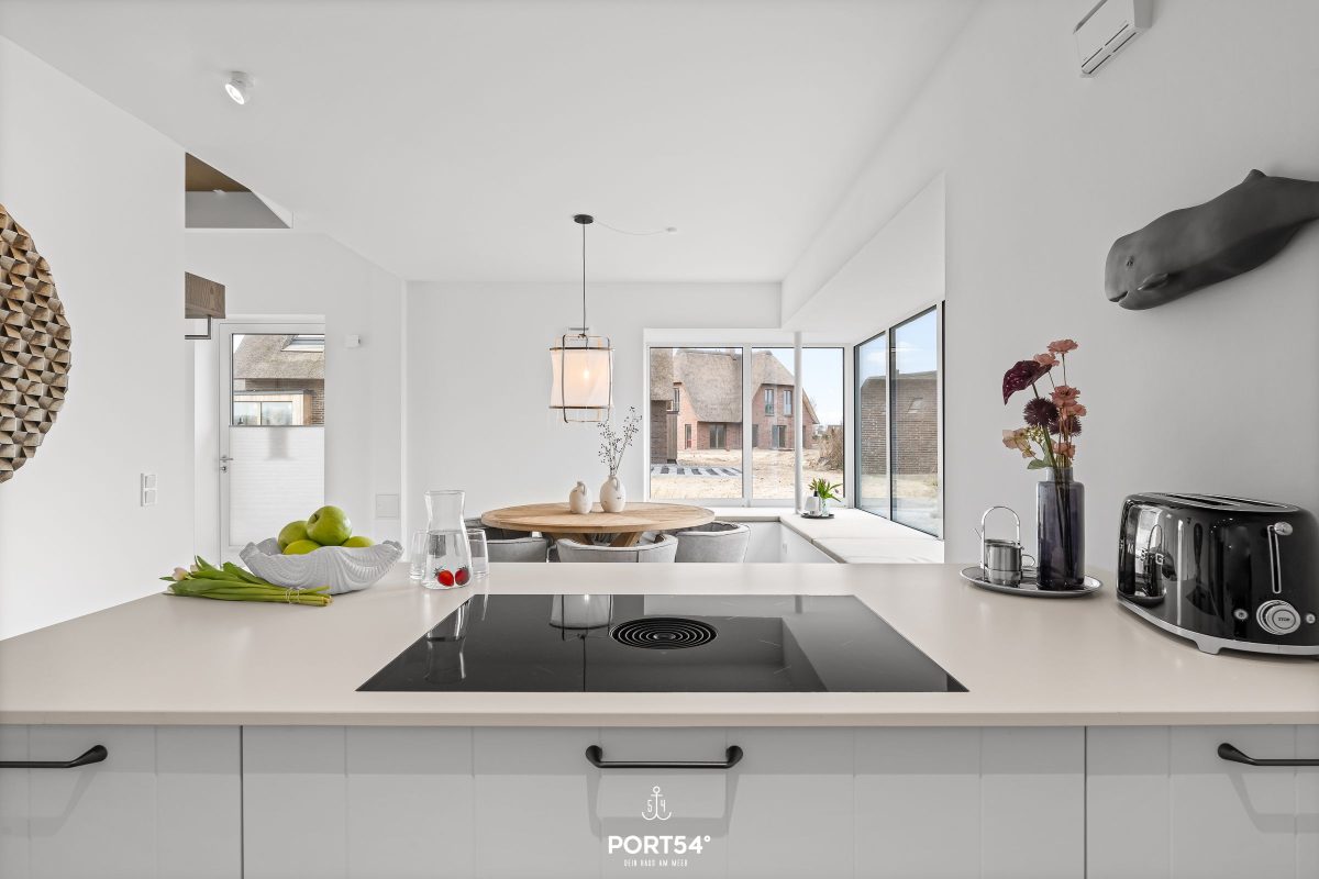 Die moderne, offen integrierte Küche bietet alles für einen perfekten Kochabend. Sie verfügt unter anderem über ein Induktionskochfeld, Backofen, Mikrowelle, Weinkühlschrank, Geschirrspüler sowie einen Kühlschrank mit Gefrierfach. Ergänzt wird die Ausstattung durch Wasserkocher, Toaster, Kaffeemaschine und eine Nespresso-Espressomaschine. Der angrenzende Essbereich mit Esstisch schafft den perfekten Rahmen für gemeinsame Mahlzeiten.