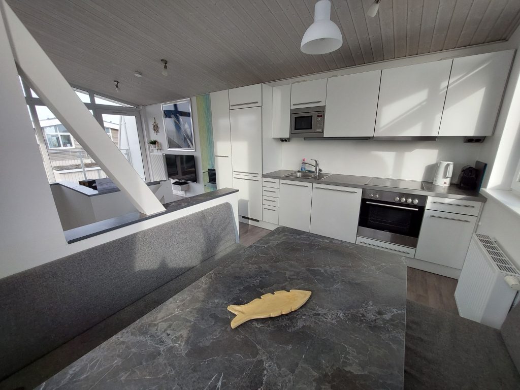 Das Haus ist groß genug für 3-4 Personen. Die Ausstattung mehr als ausreichend. Spiele sind nicht vorhanden und wer persönlich eingebrachten Charakter erwartet sowie eine spontan anspringende Sauna oder Duschwasser kühler als heiß, wird vielleicht enttäuscht bzw. braucht Geduld. Der Müllplatz genauso wie der Parkplatz liegen sehr günstig und ein Bäckerladen in greifbarer Nähe. Die Marina bietet Essen und Trinken ohne viel Auswahl, aber ist charmant und noch bezahlbar. Wer mehr Auswahl braucht, muss sich ins Auto setzen und nach Laboe oder Schönberg fahren. Unsere persönliche Auszeit war sehr schön und die vielen Möven eine Abwechslung.