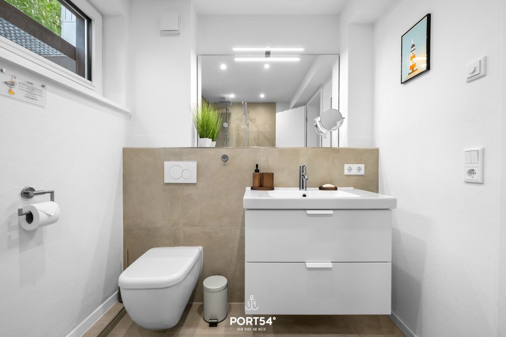 Die gehobene Doppelhaushälfte ist ca. 100 m² groß und mit eleganten Designermöbeln mit viel Liebe zum Detail eingerichtet, um das Thema des Meeres stilvoll zu vermitteln.