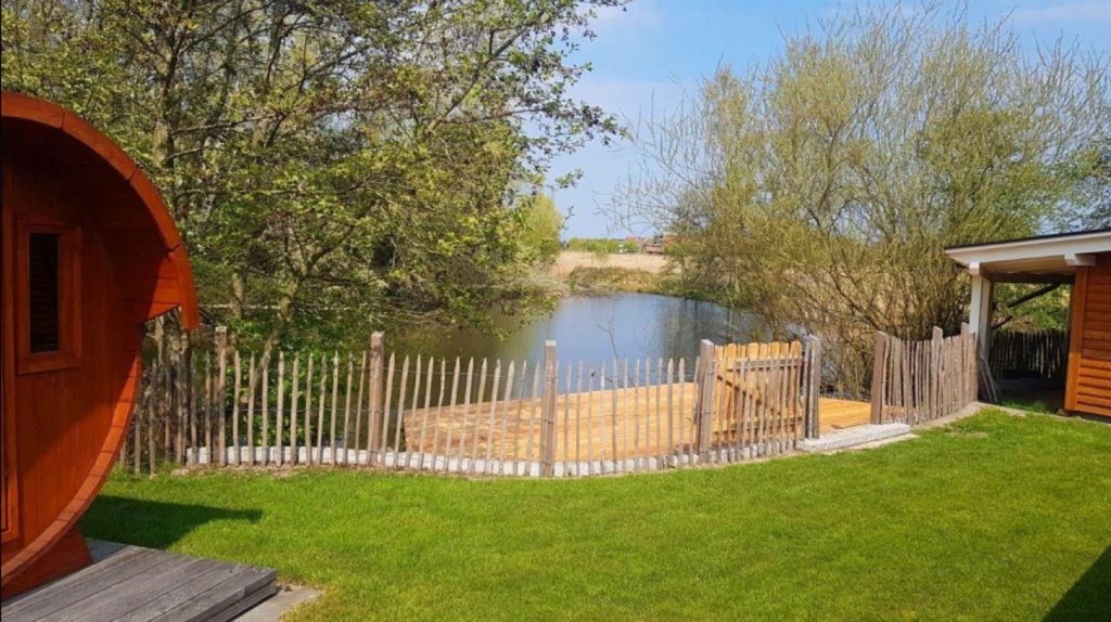 Besonders beliebt ist die Wasserterrasse – einzigartig im Ferienpark. Hier könnt ihr frühstücken, entspannen oder einfach den Blick auf den kleinen Teich genießen – ein romantischer Rückzugsort in den warmen Monaten.