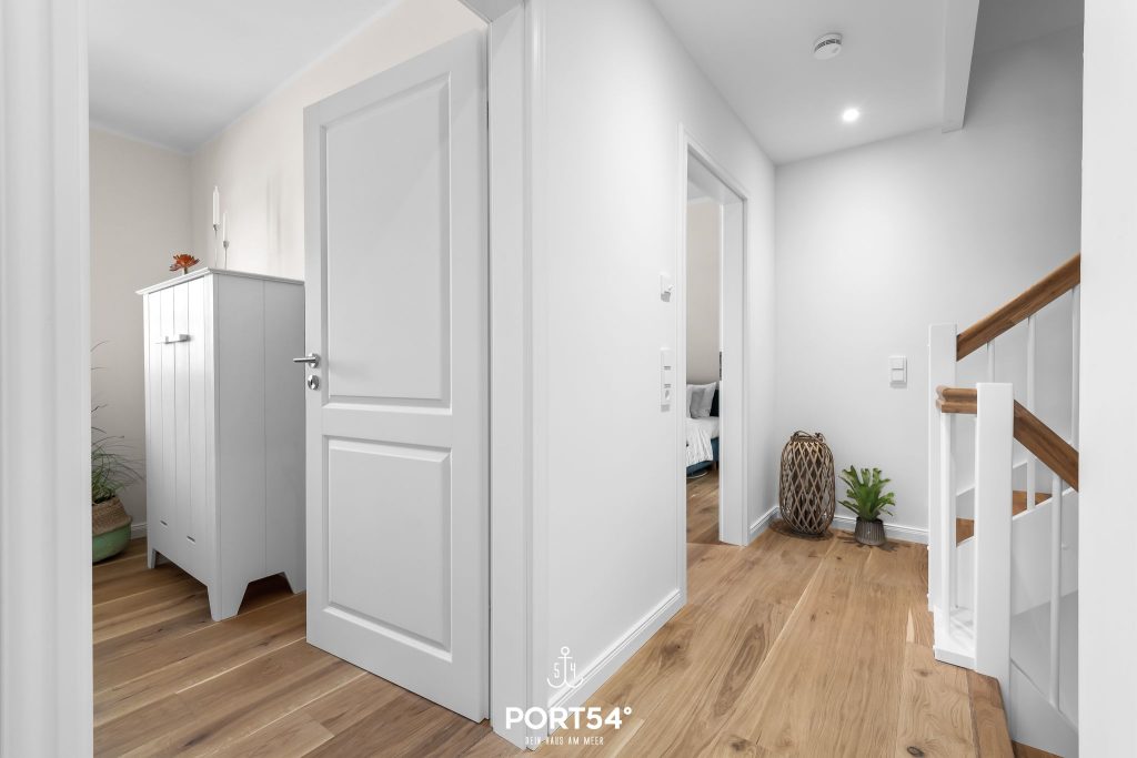 Im ersten Obergeschoss erwarten Dich zwei Schlafzimmer, wovon eins mit einem großen Doppelbett (180x200cm) und das andere mit einem Doppelbett (je 160x200cm) ausgestattet ist. Hier erwartet Dich zudem das Wannenbad mit zusätzlicher ebenerdiger XXL-Dusche.