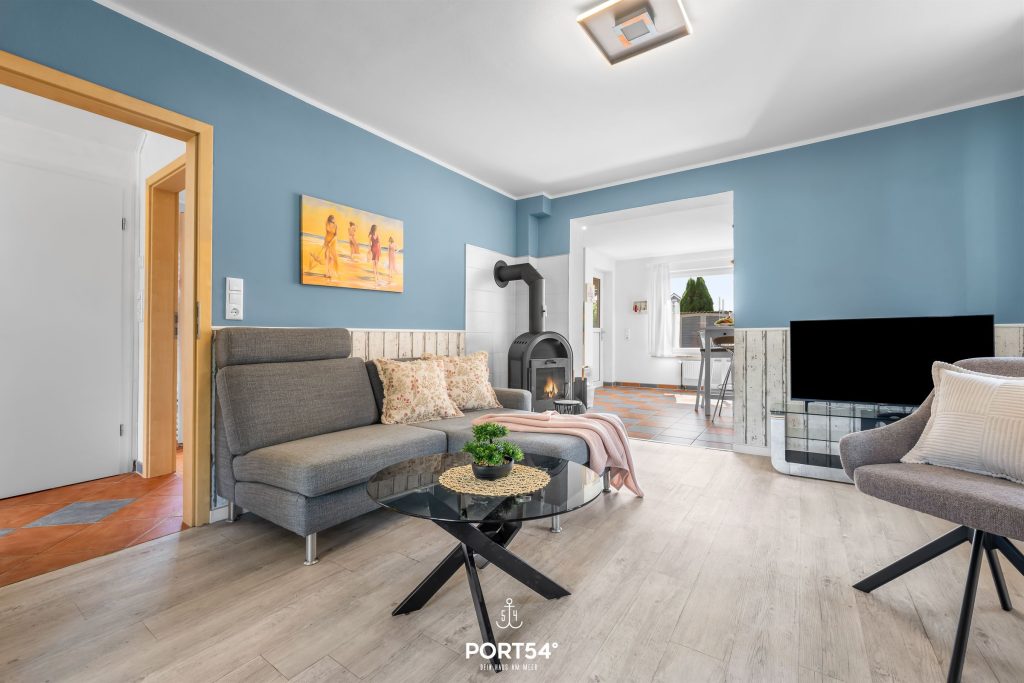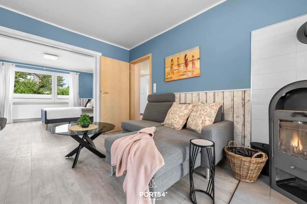 Auch der Außenbereich lässt keine Wünsche offen: Das komplett eingezäunte Grundstück sorgt für Privatsphäre und Sicherheit, besonders für Familien mit Kindern oder Reisende mit Hund. Eine überdachte Terrasse mit gemütlicher Lounge-Ecke und Feuerstelle lädt zu entspannten Abenden im Freien ein. Ein Strandkorb bietet maritimes Urlaubsgefühl, und Fahrräder können bequem und sicher abgestellt werden.