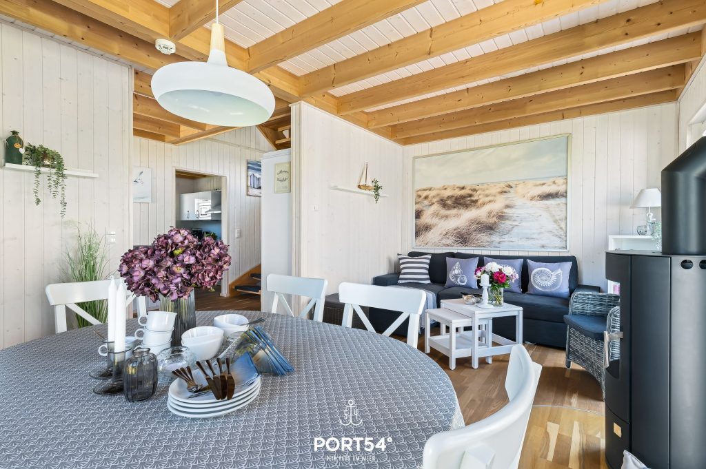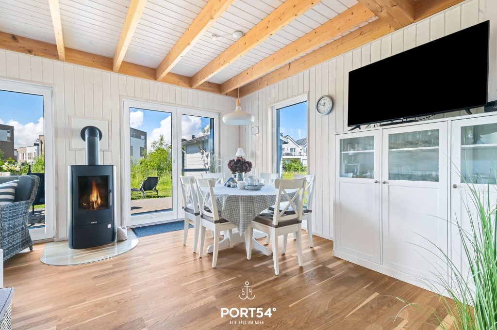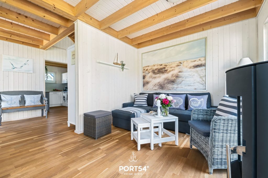 Entspanne Dich auf dem Sofa vor dem Flachbild-TV oder lasse Deine Urlaubstage auf der Terrasse ausklingen. Das Sofa kann zu einer Schlafcouch (120 x 180 cm) ausgezogen werden und eignet sich als Schlafmöglichkeit für ein Kind. An den kühleren Tagen sorgt der Kaminofen im Wohnbereich für eine gemütliche Wärme. In der voll ausgestatteten Küche lassen sich leckere Gerichte zaubern.