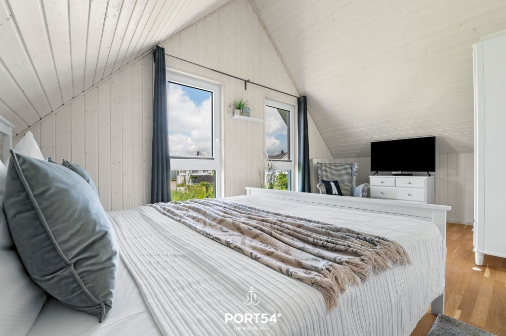 Willkommen im Ferienhaus „Strandhafer“ in Olpenitz! Mache Urlaub an der Ostsee! Das Ferienhaus bietet auf 80 m² einen offenen Wohn- und Essbereich mit Küche, zwei Schlafzimmer, zwei Badezimmer und eine Terrasse.