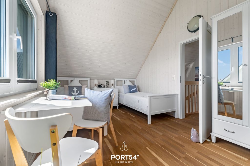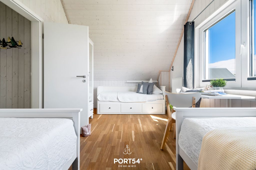 Für unsere kleinen Gäste stehen Dir ein Kinderhochstuhl, ein Reisebett und ein Kindertritthocker in jedem Badezimmer zur Verfügung. Das eine Schlafzimmer bietet ein Doppelbett (180 x 200 cm) und das andere Schlafzimmer drei Einzelbetten (je 90 x 200 cm).
