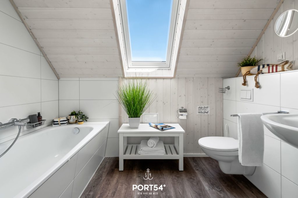 Ein Badezimmer befindet sich im Erdgeschoss und ist mit einer Dusche, einem Kosmetikspiegel, einem Handtuchheizkörper und dem Highlight: einer Infrarot-Sauna ausgestattet. Hier kannst Du Dich an kalten Tagen aufwärmen und entspannen! Das andere Badezimmer befindet sich im Obergeschoss und bietet eine Duschwanne sowie ebenfalls einen Kosmetikspiegel.