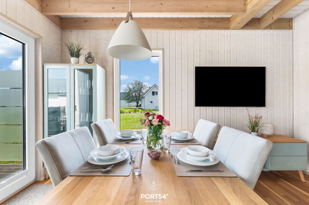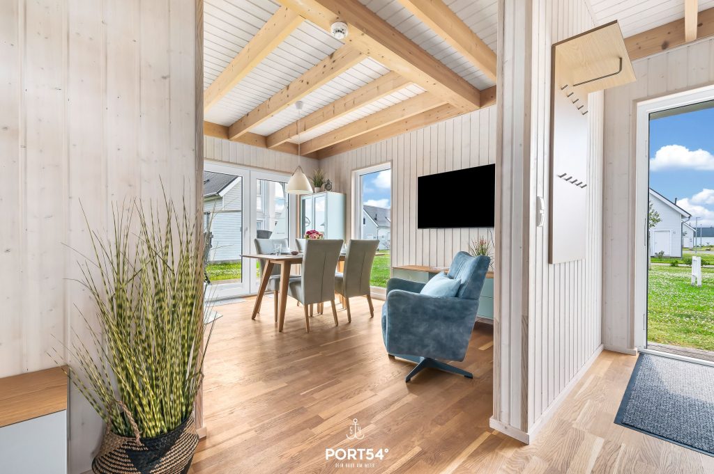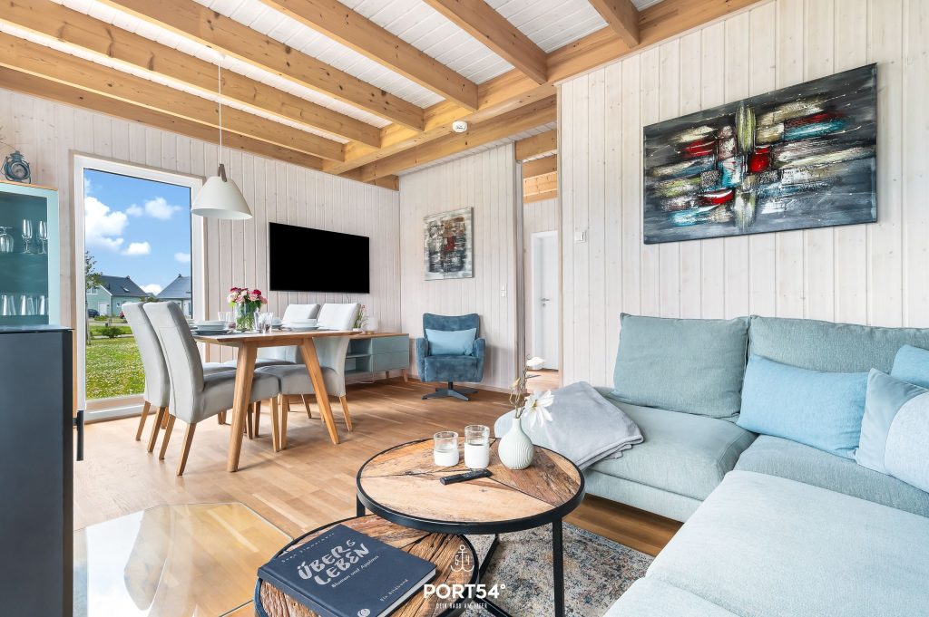Das Ferienhaus bietet Dir auf 80 m² einen offenen Wohn- und Essbereich mit Küche, zwei Schlafzimmer, zwei Badezimmer sowie eine Terrasse.