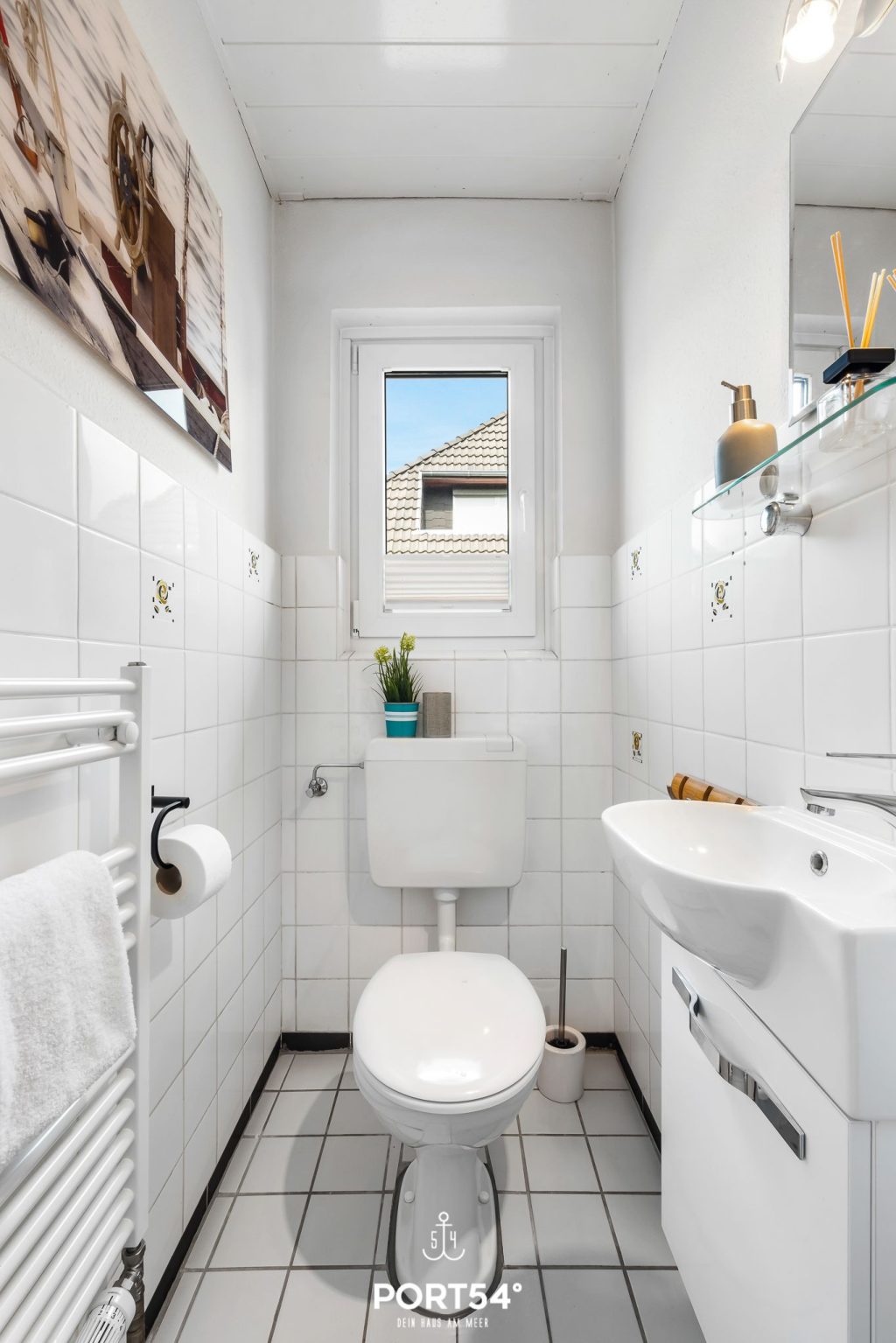 In Büsumer Toplage, unweit der Innenstadt, der Familienlagune Perlebucht und diverser Freizeitaktivitäten bietet die "Villa Meerzeit" Platz für bis zu 8 Personen. Auf 120m² bieten vier Schlafzimmer, ein Badezimmer mit Badewanne, ein Gäste-WC sowie eine vollausgestattete Küche und ein gemütliches Wohn- und Esszimmer den perfekten Ort für einen Nordseeurlaub der Extraklasse. Die Fass-Sauna im Garten lädt zu entspannten Abenden ein. Drei der Schlafzimmer befinden sich im ersten Obergeschoss und bieten entweder ein großes Doppelbett (180x200cm), ein schmales Doppelbett (140x200cm) oder zwei Einzelbetten (90x200cm). Das Schlafzimmer im Erdgeschoss verfügt ebenfalls über ein Doppelbett (160x200cm). Die in süd-westliche Richtung angelegte, vollmöblierte Terrasse bietet zu jeder Tageszeit einen Ort der Ruhe. An lauen Sommerabenden lassen sich gesellige Grillabende am Elektro-Grill verbringen. Vor dem Haus befindet sich eine kostenfreie Parkmöglichkeit. Mitgebrachte Fahrräder können Sie im Garten unter einem Vordach abstellen. Dieser Bereich ist nach vorne abschließbar.