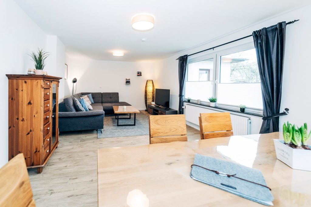Die stilvolle Küche bietet Dir eine qualitativ hochwertige Ausstattung sowie einen Esstisch. Das gemütliche Wohnzimmer mit...