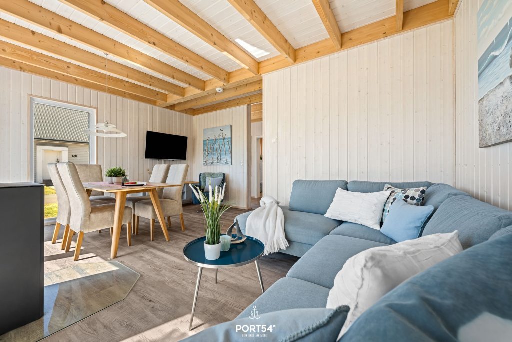 Bei Sonnenschein sorgen die großen Panoramafenster für ein lichtdurchflutetes Wohlfühlambiente. Im Wohnzimmer steht Dir ein Schlafsofa zur Verfügung, auf dem eine weitere Person Platz findet.