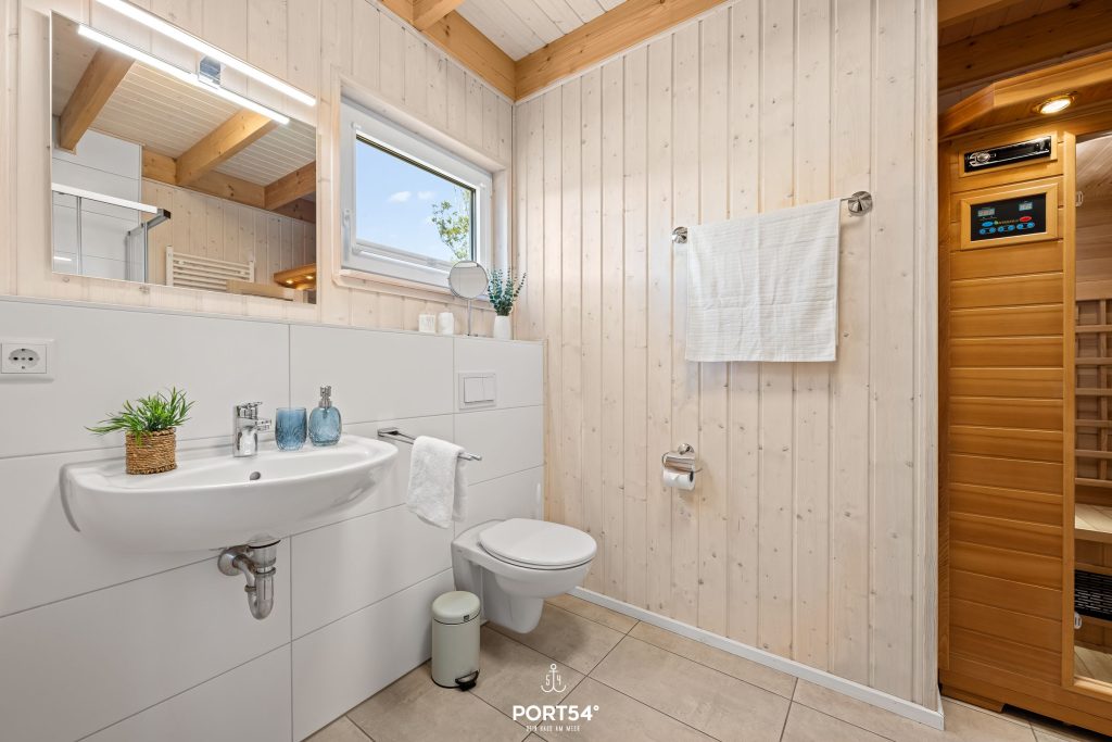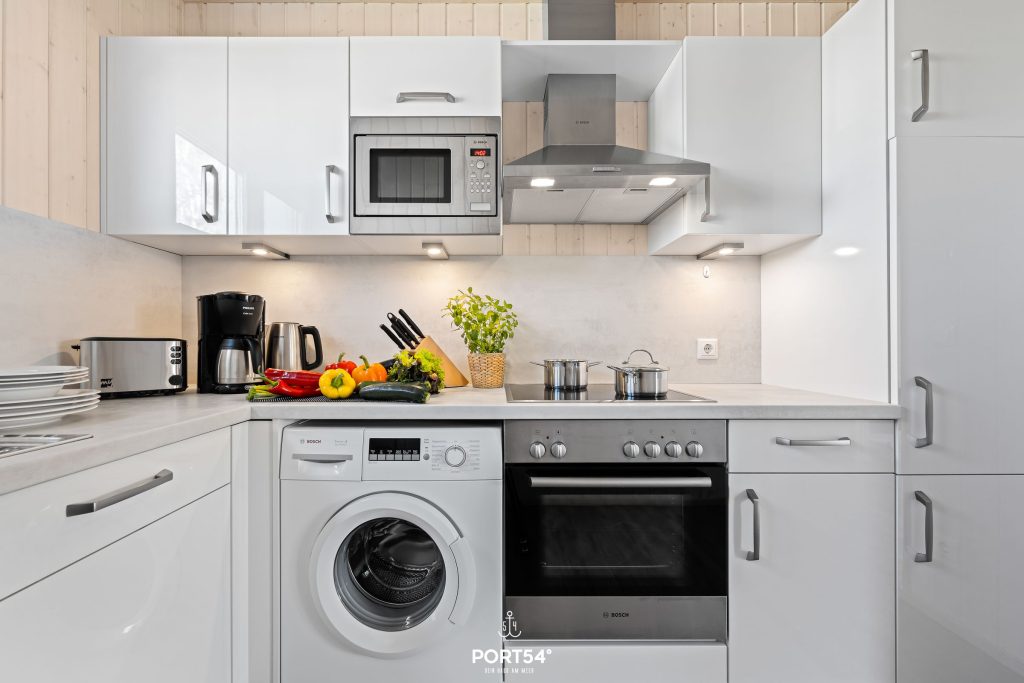 Weiterhin befindet sich im Erdgeschoss ein modernes Wellnessbad mit einer Infrarotkabine, Dusche und WC. Die modern eingerichtete Küche lässt keine Wünsche offen. Du findest hier alles, um Dich und Deine Mitreisenden kulinarisch verwöhnen zu können.