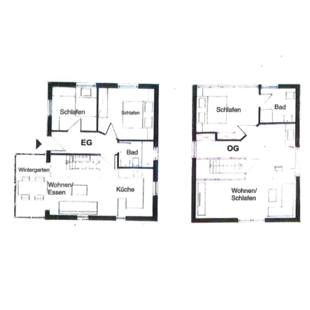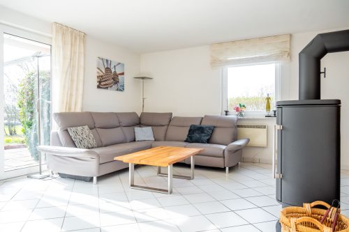 Im Mittelpunkt des Hauses steht der Wohnbereich mit offener Küche zum Wohnzimmer und mit Wintergarten. Hier findet ihr ein gemütliches Sofa, einen Sessel, einen Essbereich mit Esstisch sowie einen TV und Gesellschaftsspiele. Die Küche bietet unter anderem einen Ceranherd, einen Backofen, eine Spülmaschine sowie Kaffeemaschine, einen Eierkocher und eine Espressomaschine. Hier könnt ihr gemeinsame Kochabende verbringen. Im Erdgeschoss befinden sich zudem 2 Schlafzimmer. In einem befindet sich ein Doppelbett (180x200cm), im anderen ein kleines Doppelbett (140x200cm). Beide Schlafzimmer sind mit einem Kleiderschrank, Vorhängen und Insektenschutzgittern ausgestattet. Auf dieser Etage befindet sich eins der zwei Badezimmer. In diesem Tageslichtbad gibt es eine Badewanne mit Duschvorhang und einen Föhn. Im 1. Stock, zugänglich über eine Treppe, befindet sich ein weiterer Wohnbereich mit einem Sofa, einem Schreibtisch, einem TV sowie 2 Schlafmöglichkeiten auf einem kleinen Doppelbett (140x200cm). Weitere 2 Schlafmöglichkeiten bietet hier das 3. Schlafzimmer mit einem Doppelbett (180x200cm). Über dieses Schlafzimmer gelangt man in das Badezimmer im Obergeschoss, welches mit einer Dusche, Fenster, Kosmetikspiegel und ebenfalls einem Haartrockner ausgestattet ist.