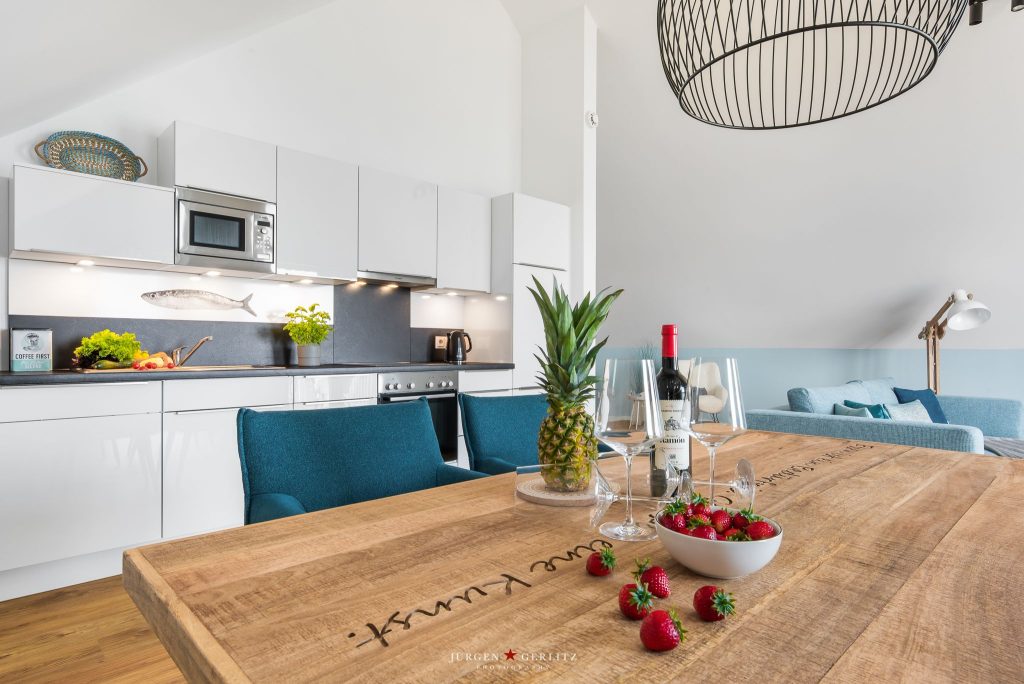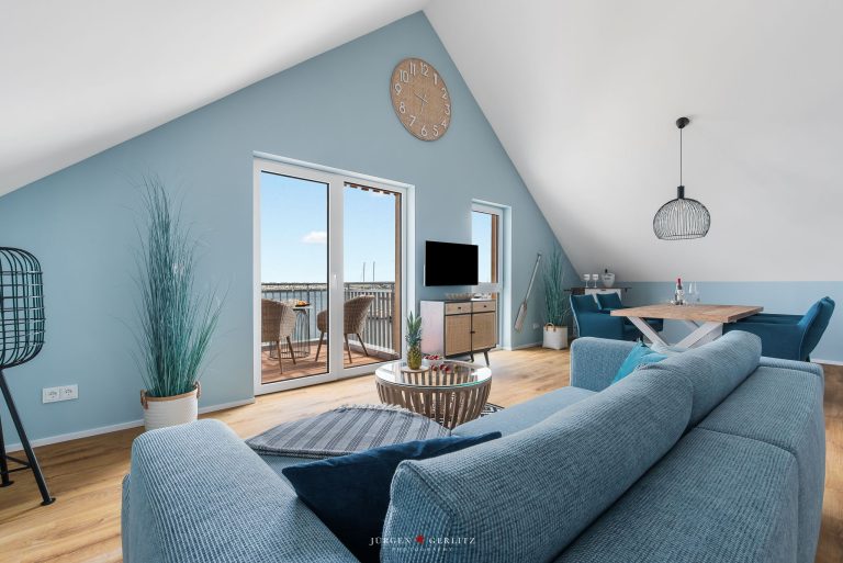 Genieße, in der exklusiven Ferienwohnung „Aloha Lounge“, einen unvergesslichen 180-Grad Panorama-Blick über das gesamte Hafenbecken von Olpenitz, den Yachthafen von Maasholm, die ein- und ausfahrenden Schiffe auf der Schlei und die Lotseninsel bis nach Dänemark!