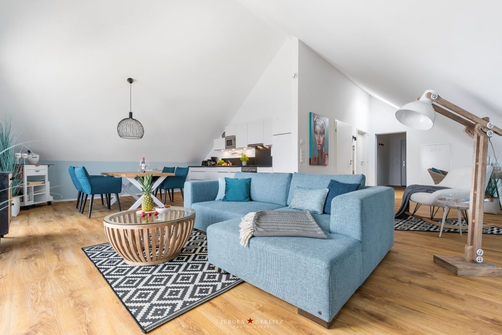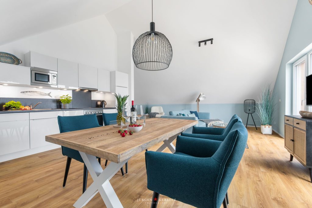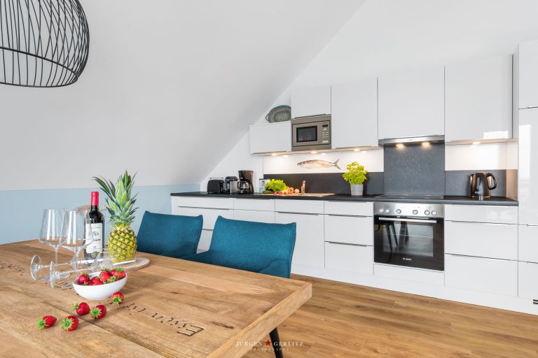 Wir haben uns in der Wohnung pudelwohl gefühlt. Der Ausblick auf Hafen, Schlei und Ostsee ist unvergleichlich. Davon zehren wir heute noch. Die Wohnung ist modern und gemütlich eingerichtet, sie ist hell und freundlich, auch durch die Dachfenster. Es fehlt an nichts. Von Vorteil war für mich vor allem aufgrund meiner Gehbehinderung auch, dass der Parkplatz eine ausreiche Breite hat.und relativ nah ist. Außerdem ist ein Aufzug vorhanden. Vor dem Haus befindet sich die Hafenpromenade mit einigen Geschäften und Imbissmöglichkeiten. Als Supermarkt ist EDEKA zu Fuß erreichbar.