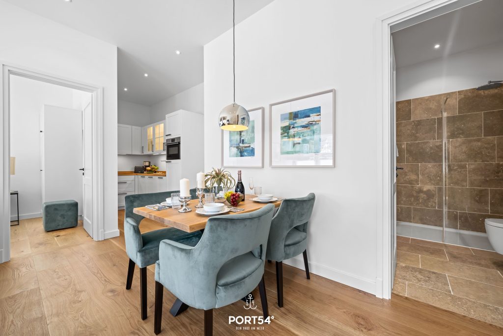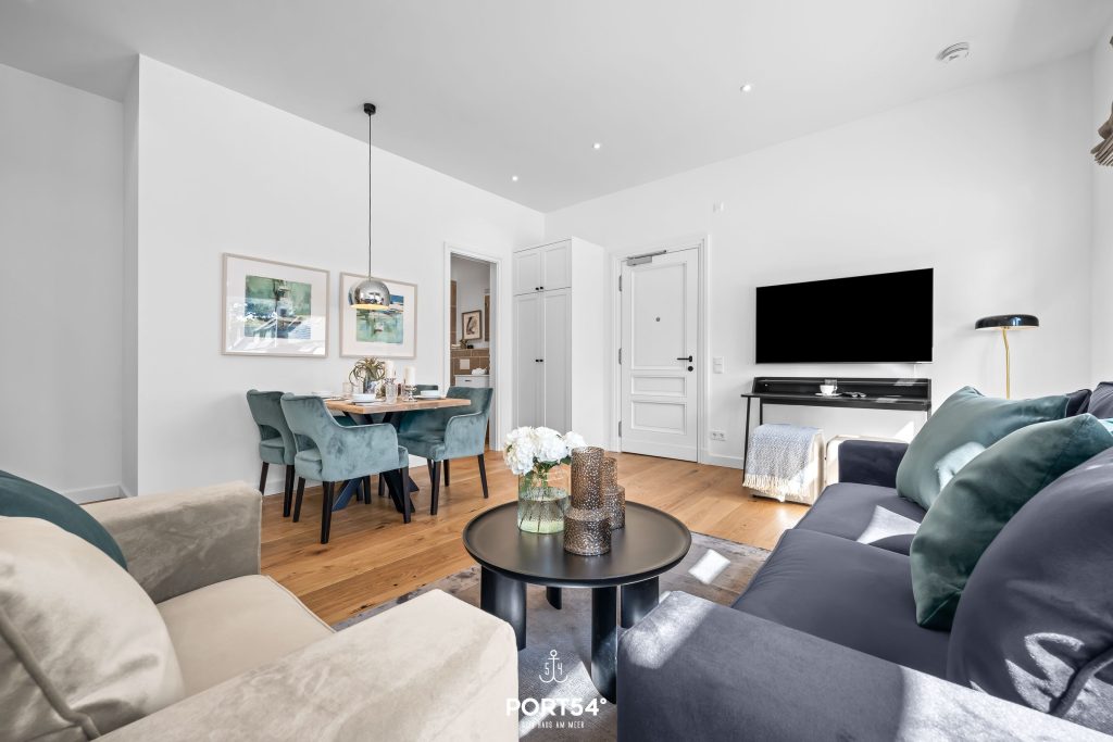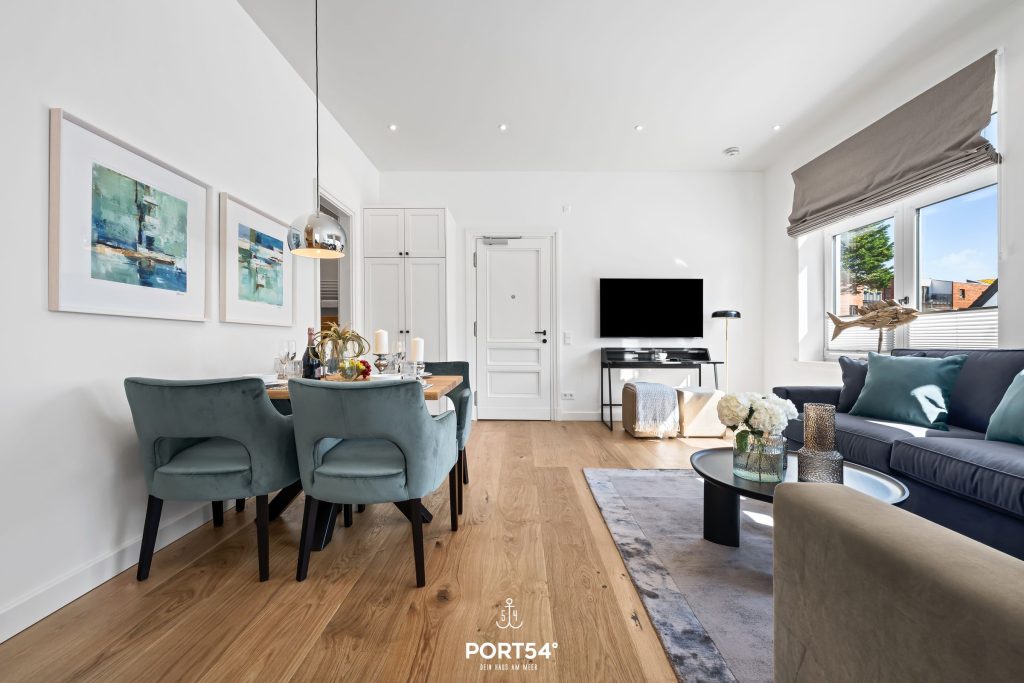 Schönes, gemütliches, sehr gut und wertig renoviertes Appartment. Sehr zentrale Lage.Die Haupteinkaufsstrasse (Friedrichstraße) und auch der Strand sind im fußläufigen Bereich. Durch die unmittelbare Nähe zum Bahnhof als Verkehrsknotenpunkt muss mit Verkehrslärm gerechnet werden., der durch Schallschutzfenster abgemildert wird.Die Betreuung durch Port 54 ist sehr gut. Freundliches, hilfsbereites und angenehmes Personal. Schnelle und problemlose Abwicklung der Buchung und von persönlichen Anliegen.