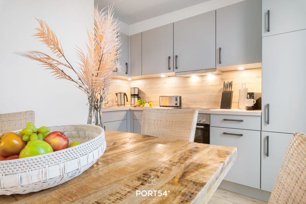 Die Küche ist modern und voll ausgestattet und bietet Dir im angrenzenden Essbereich Platz für bis zu 6 Personen.