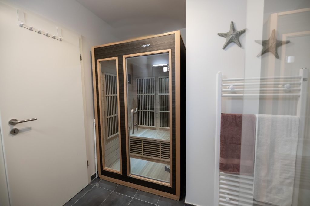 Neben zwei Schlafzimmern, einem hellen und freundlichen Badezimmer mit Infrarot-Sauna, einem sehr ansprechenden Wohn- und Essbereich sowie...