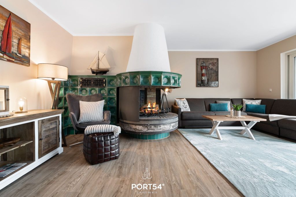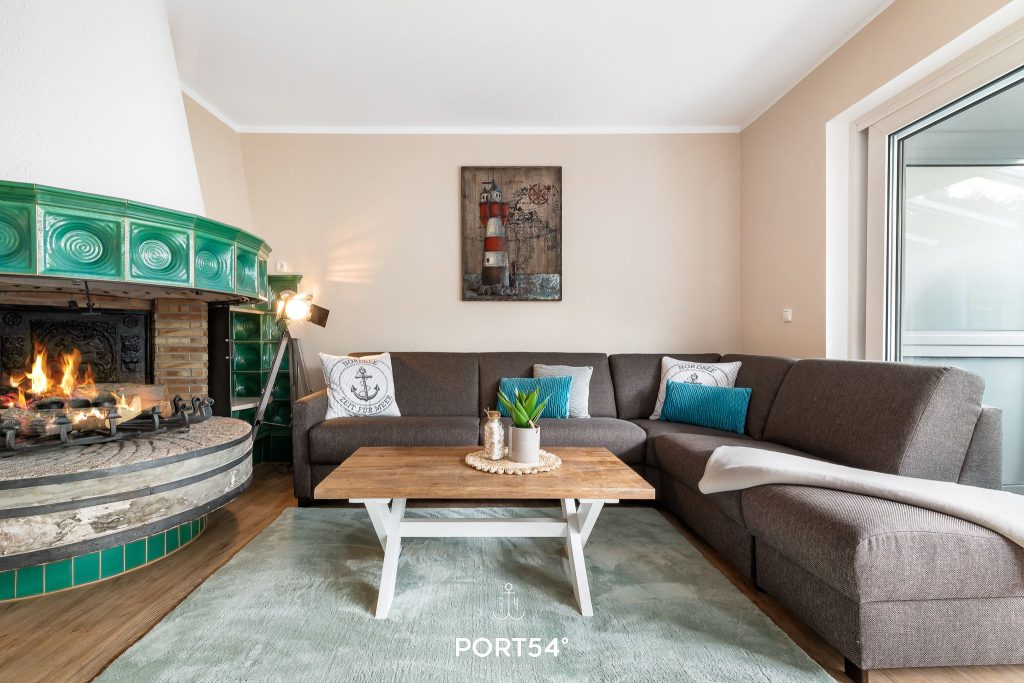 Der offene Kamin im Wohnzimmer dient ausschließlich dekorativen Zwecken und ist nicht nutzbar.