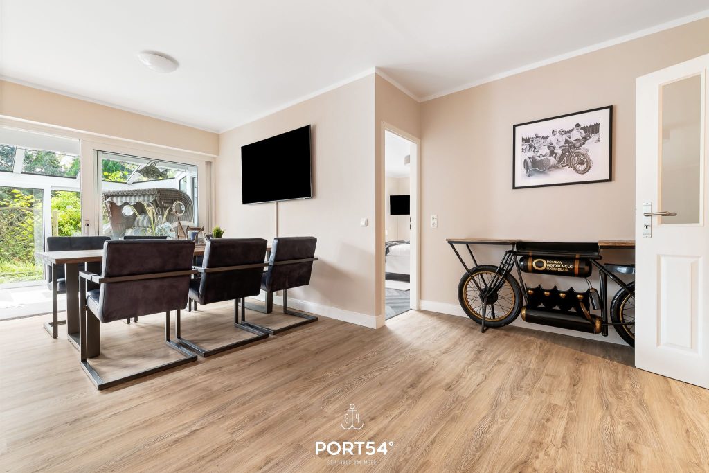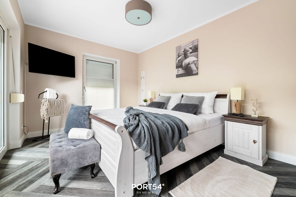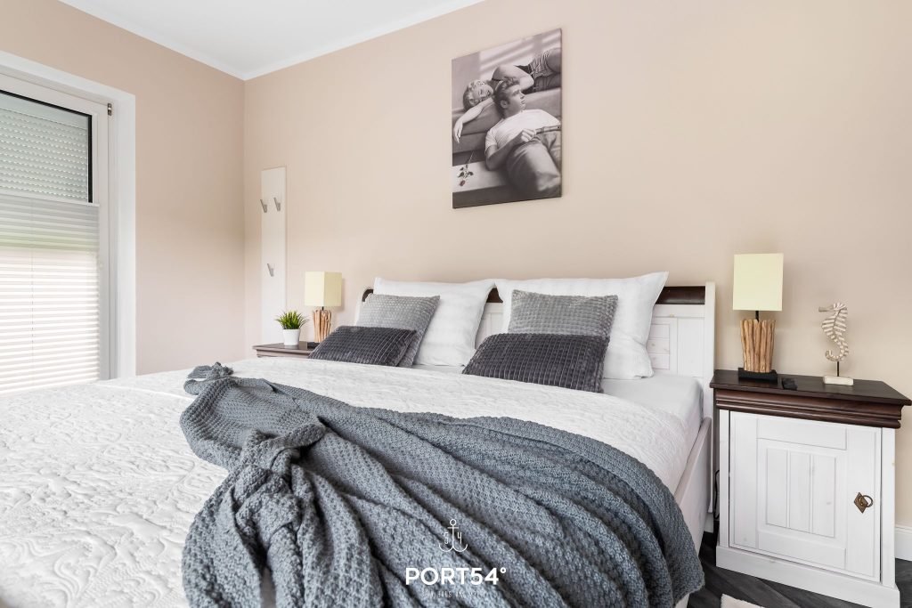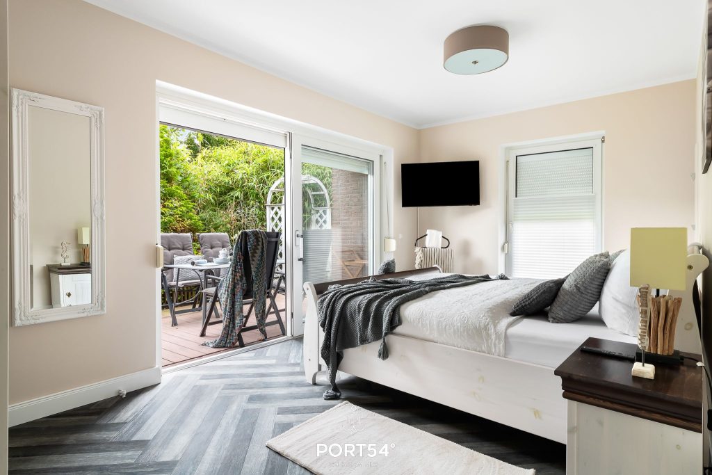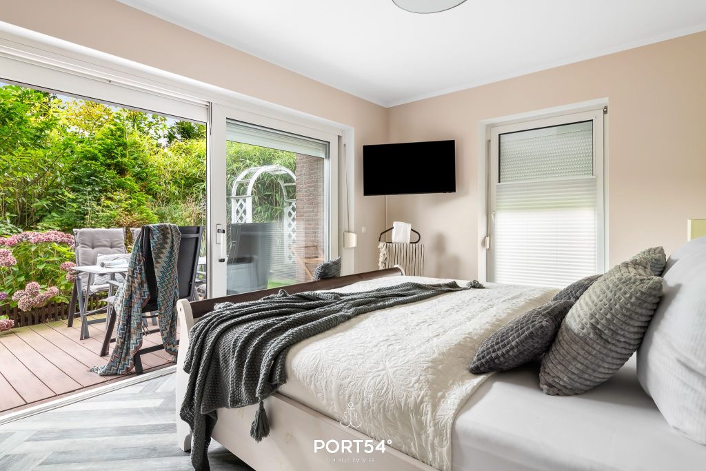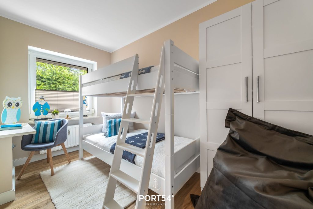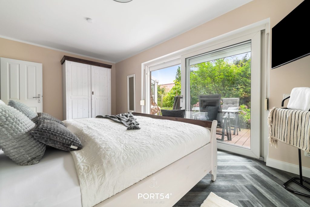Im ersten Schlafzimmer erwartet dich ein großes Doppelbett (180 x 200 cm) mit direktem Zugang zur Terrasse. Das zweite Schlafzimmer ist mit einem Etagenbett ausgestattet (je 90 x 200 cm). Ein besonderes Highlight der Wohnung ist – neben der möblierten Terrasse mit Strandkorb – der Wintergarten, der auch in der kälteren Jahreszeit zum Entspannen einlädt.