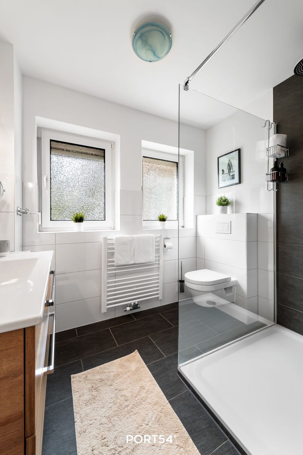 Mit einer Wohnfläche von 110 m² bietet dir die Ferienwohnung großzügigen Platz für bis zu sechs Personen. Sie verfügt über zwei Schlafzimmer, die für erholsame Nächte sorgen. Ein modernes Badezimmer ist mit einer bodengleichen Dusche und WC ausgestattet. Für zusätzlichen Komfort stehen dir eine Waschmaschine und ein Trockner zur gemeinschaftlichen Nutzung gegen eine kleine Gebühr zur Verfügung – ebenso wie Bügelbrett und Bügeleisen.