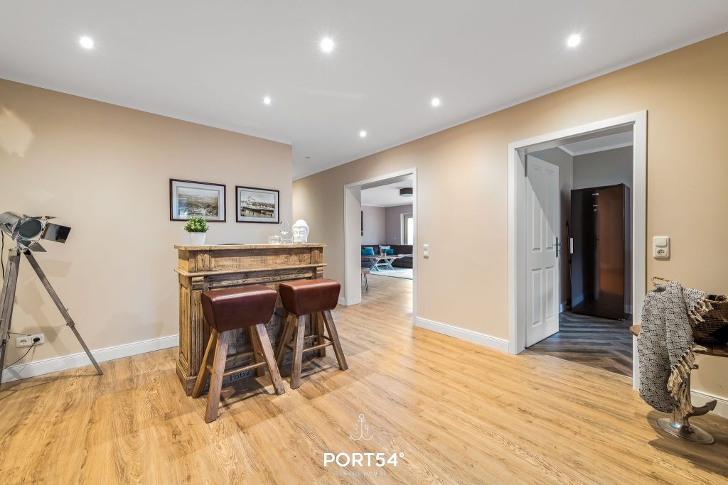 Die Ferienwohnung Deck 2 befindet sich im Erdgeschoss in zentraler Lage, nur 300 Meter vom Stadtzentrum entfernt.