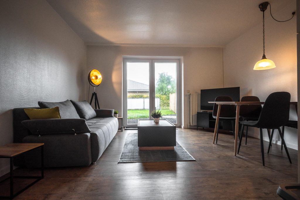 Das Schlafzimmer bietet Schlafmöglichkeiten für zwei Personen. Im Wohnzimmer steht dir ein bequemes Sofa als zusätzliche Schlafgelegenheit für bis zu zwei Personen zur Verfügung. Große Fenster sorgen für viel Licht und schaffen eine angenehme Wohnatmosphäre.
