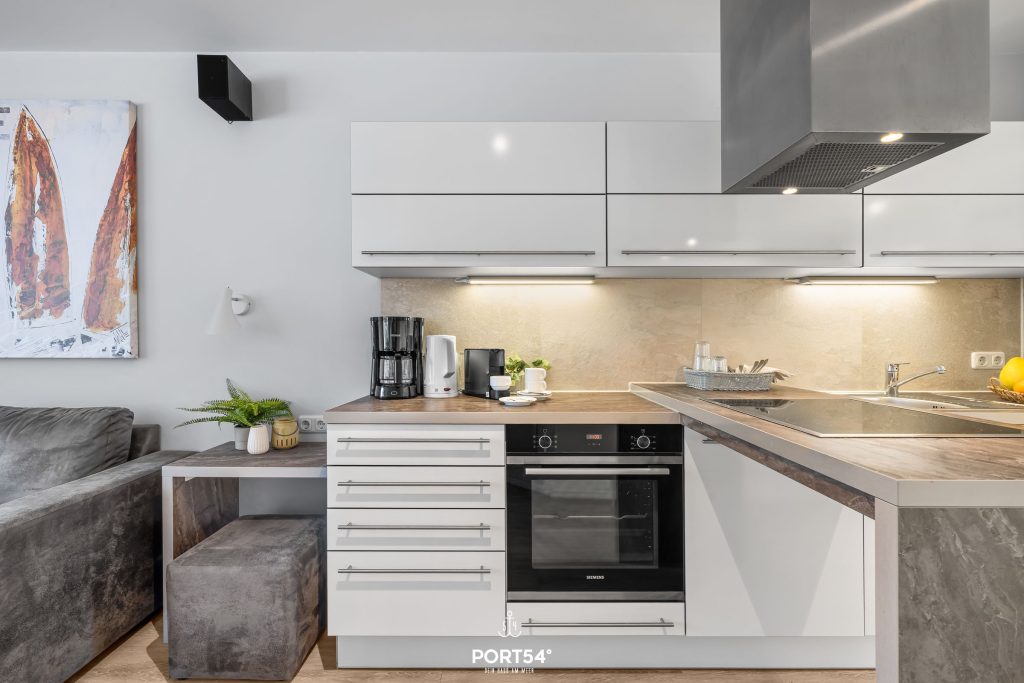 Die Küche ist modern und offen gestaltet und bietet alles, was du für die Selbstversorgung brauchst: Induktionskochfeld, Backofen, Mikrowelle, Geschirrspüler, Kühlschrank mit Gefrierfach, Nespresso-Espressomaschine, Kaffeemaschine, Wasserkocher, Toaster sowie sämtliches Koch- und Essgeschirr.