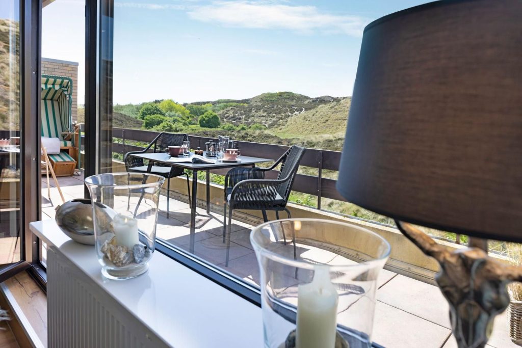 Ein besonderes Highlight ist der Balkon mit Gartenmöbeln und Strandkorb, von dem aus du in ruhiger Atmosphäre einen herrlichen, direkten Blick auf die Dünen genießen kannst. Die Lage der Ferienwohnung in List auf Sylt bietet kurze Wege zu wichtigen Anlaufstellen: Der öffentliche Nahverkehr ist ca. 200 m entfernt, das Zentrum erreichst du nach etwa 1.000 m. Meer und Sandstrand liegen jeweils rund 1.000 m entfernt, Restaurants ca. 1.200 m. Ein Supermarkt, Bank/Geldautomat sowie ein Krankenhaus befinden sich in der Nähe. Die Fähre ist ca. 2.000 m, der Flughafen Sylt ca. 16.000 m und der Bahnhof ca. 18.000 m entfernt.