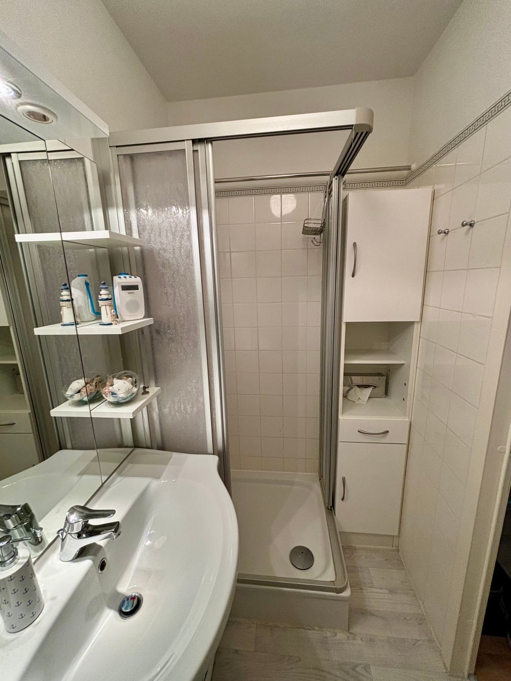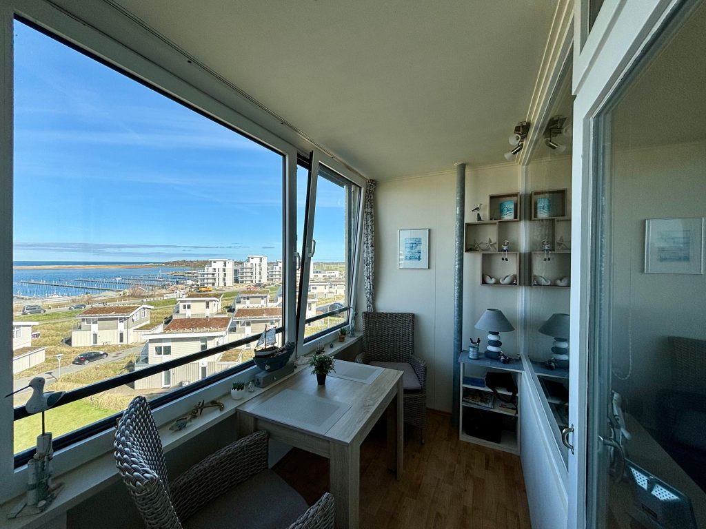 Den Esstisch haben wir gar nicht genutzt, denn in dem kleinen Wintergarten zu essen war unser tägliches Highlight. Der Blick ist einfach unsagbar schön. Kreuzfahrtschiff, Containerschiffe und die Möwen mit ihren Küken, der Sonnenuntergang...einfach wunderbar. Wir werden wieder kommen.