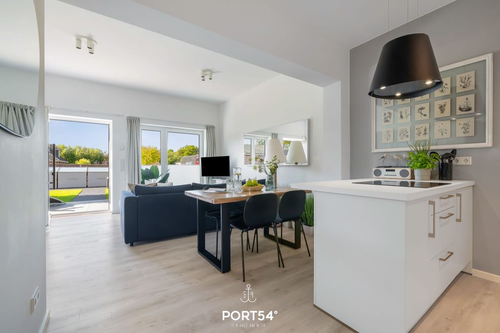 Im geräumigen Wohnzimmer mit offener Küche können Sie es sich gemütlich machen. Die Küche ist modern und voll ausgestattet, sodass Sie hier wunderbar kochen können. Auf der angrenzenden Sonnenterrasse mit einem Gemeinschaftsgarten können Sie herrliche Stunden an der frischen Nordseeluft verbringen. Die beiden Schlafzimmer sind hochwertig eingerichtet. Der eine Raum verfügt über ein Doppelbett, der andere über 2 Einzelbetten. Für weitere 2 Personen steht im Wohnzimmer ein gemütliches Schlafsofa zur Verfügung. Das helle Badezimmer hat eine Dusche. Die gesamte Wohnung verfügt über eine Fußbodenheizung. Auf der angrenzenden Sonnenterrasse mit Gemeinschaftsgarten können Sie herrliche Stunden an der frischen Nordseeluft verbringen. Ein Elektrogrill steht Ihnen für gesellige Grillabende zur Verfügung.