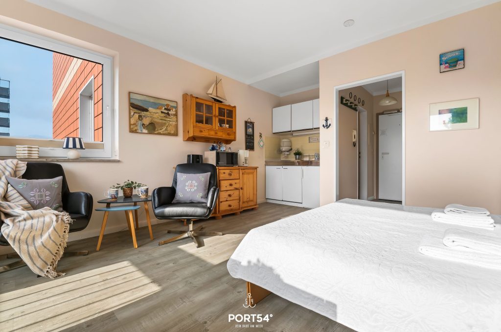 Die Ferienwohnung „Frieda“ in St. Peter-Ording bietet dir auf 26 m² Platz für bis zu 2 Personen – ideal für eine Auszeit zu zweit oder einen kompakten Aufenthalt. Die Wohnung liegt im 3. Stock und ist bequem per Aufzug erreichbar. Strand, Bahnhof, Einkaufsmöglichkeiten und Restaurants sind gut erreichbar.