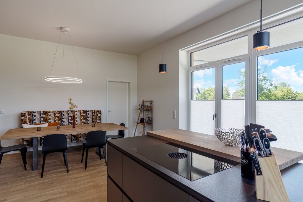 Schön waren Verdunkelungsvorhänge im Küchen/Essbereich gewesen.