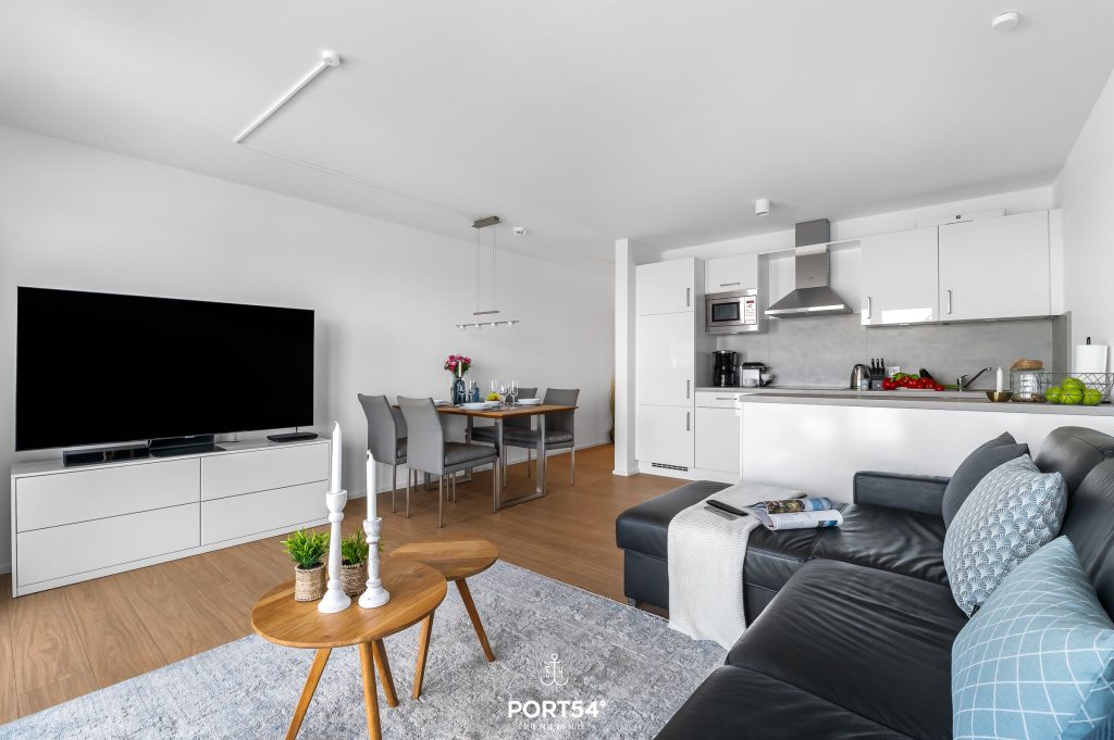 Die Wohnung „Hafenflair“ in Olpenitz befindet sich im 1. Obergeschoss und bietet Dir auf 52 m² ein modernes Zuhause in bester Lage direkt an der Hafenpromenade.