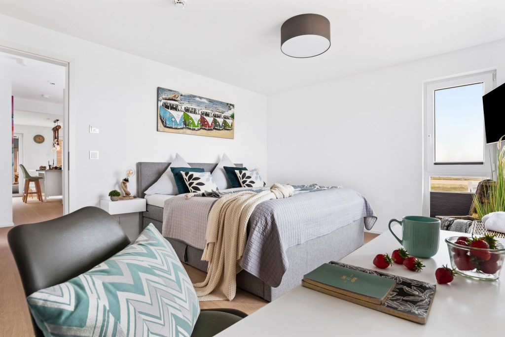 Willkommen in der Hafenlounge Olpenitz, einem modernen Apartment, das Dir auf 72 m² ein einzigartiges Wohlfühlambiente bietet.
