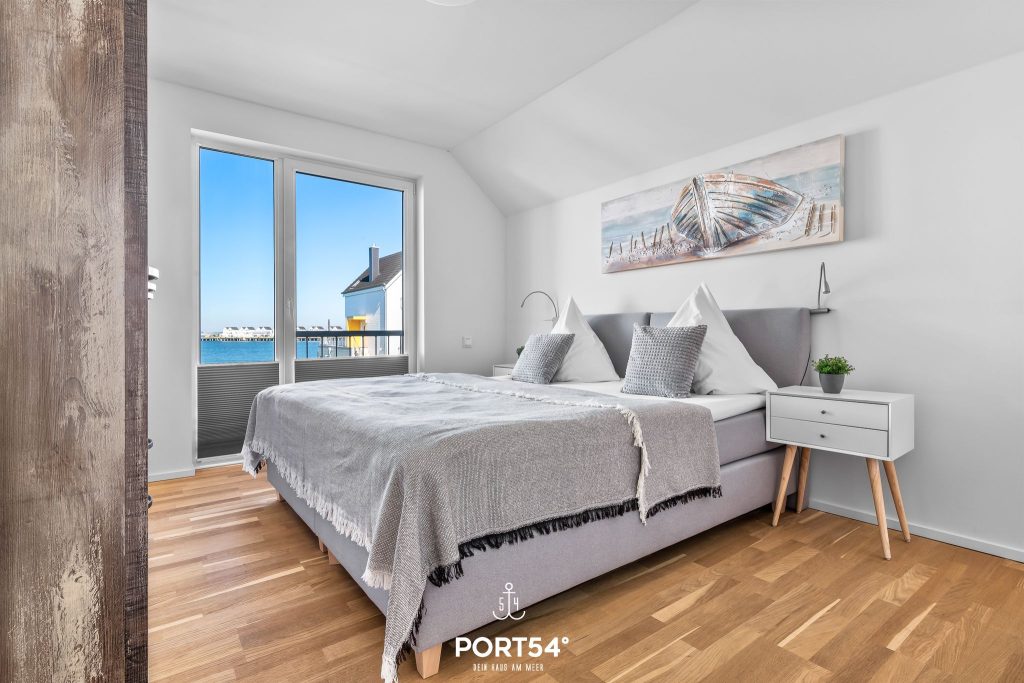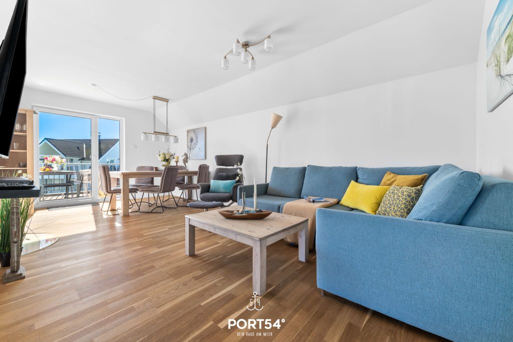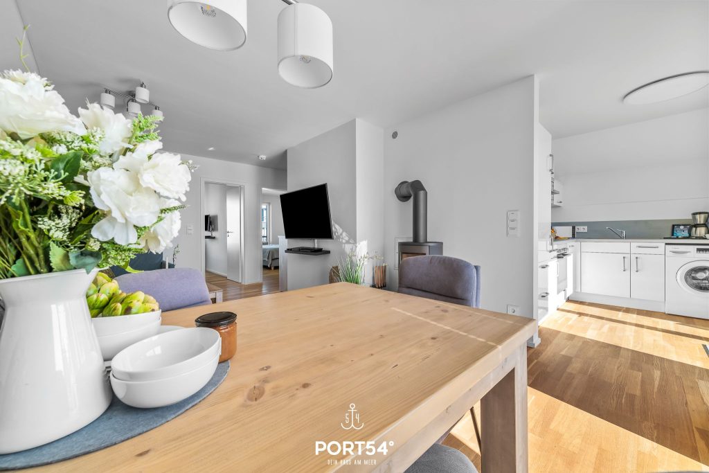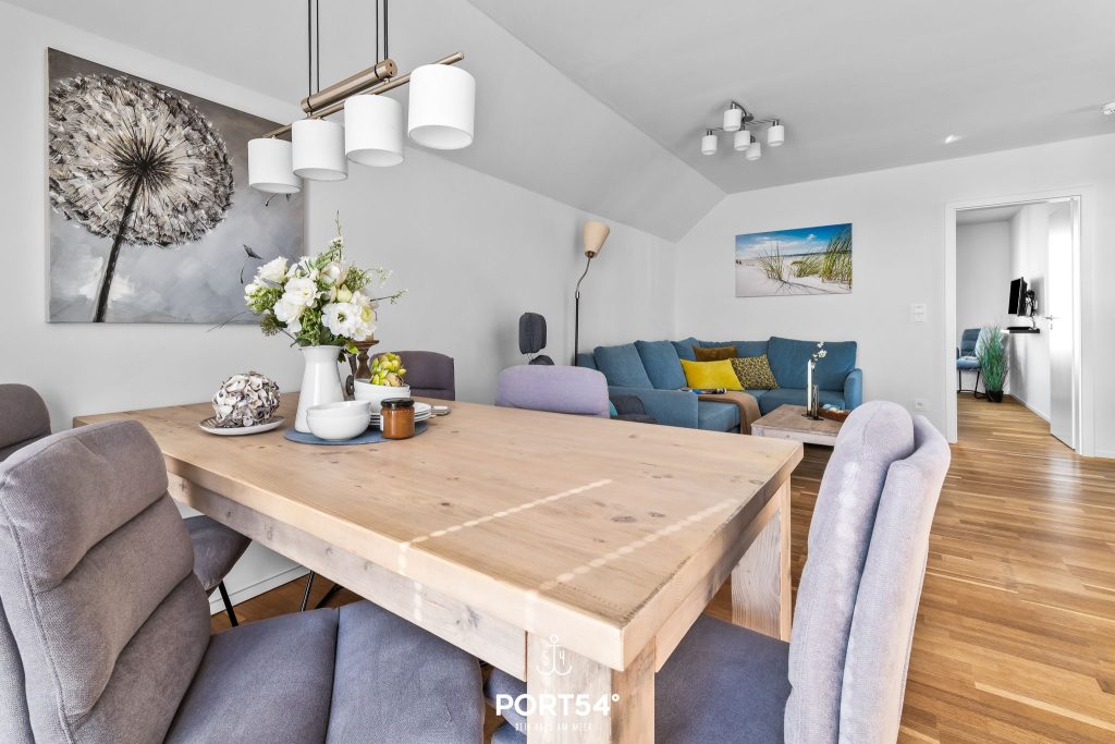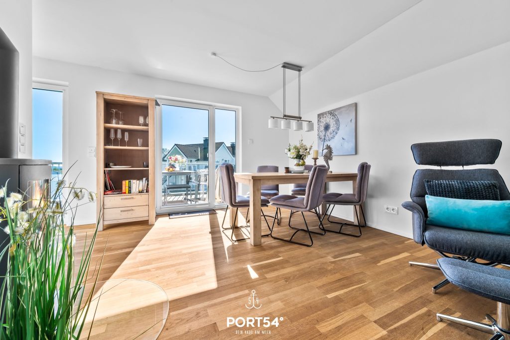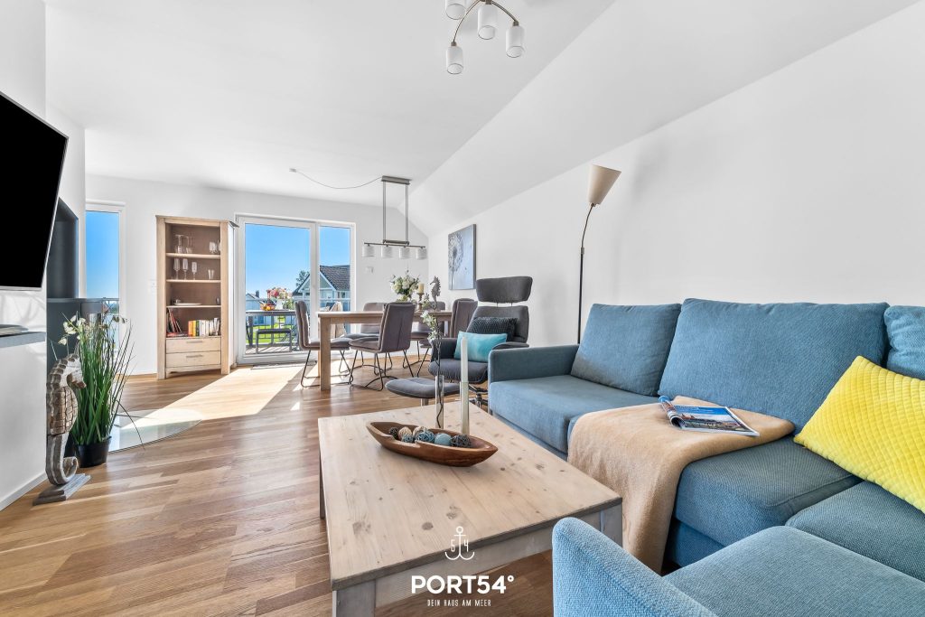 Die hochwertig ausgestattete Ferienwohnung bietet Dir zwei Schlafzimmer, einen offenen Wohn- und Essbereich mit Küche sowie ein Wellnessbad und zwei Balkone.