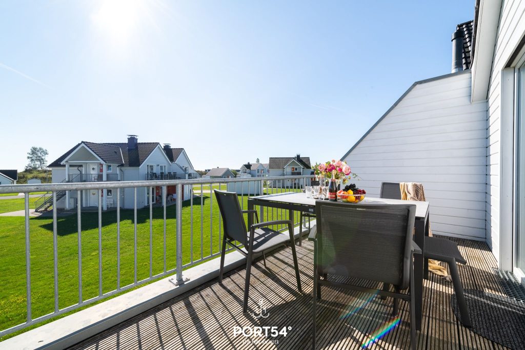 Auf den Balkonen kannst Du gesellig mit der ganzen Familie beisammensitzen. An lauen Sommerabenden kannst Du am Elektrogrill grillen und anschließend den Urlaubstag mit einem Glas Wein im Strandkorb ausklingen lassen.