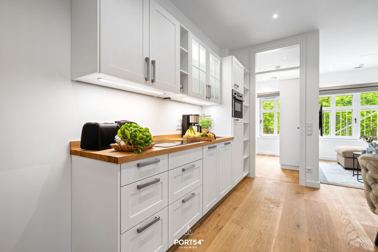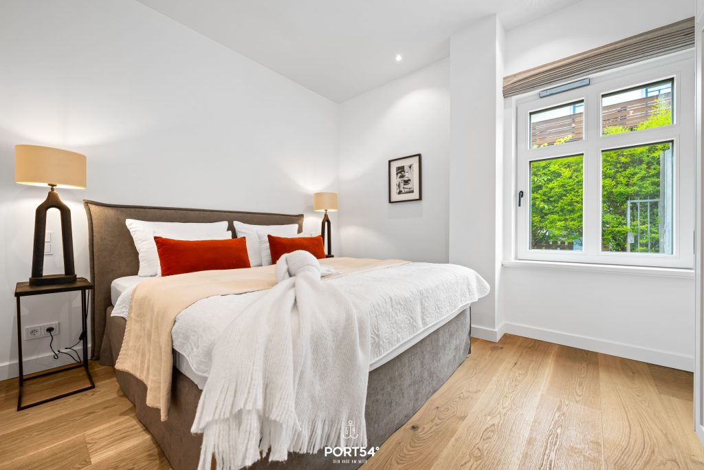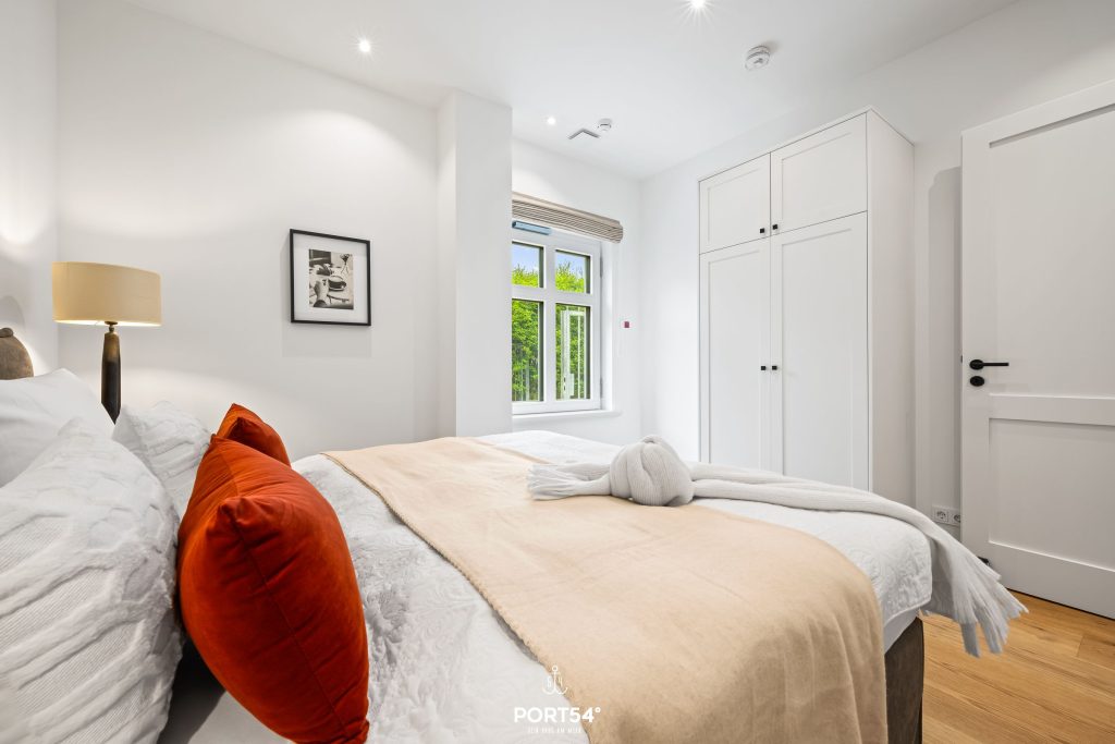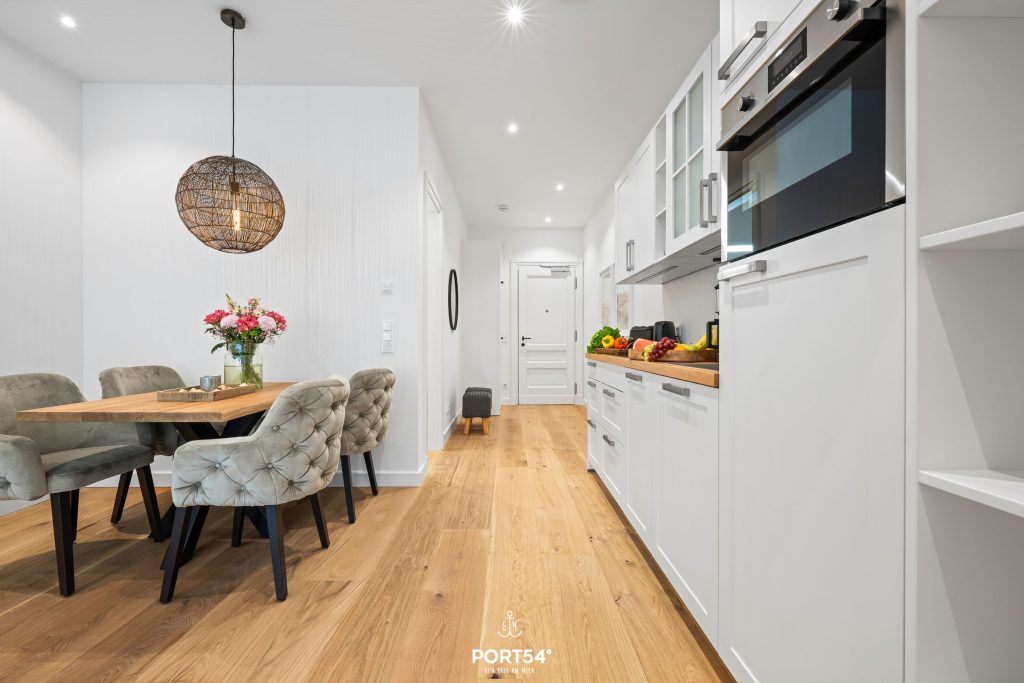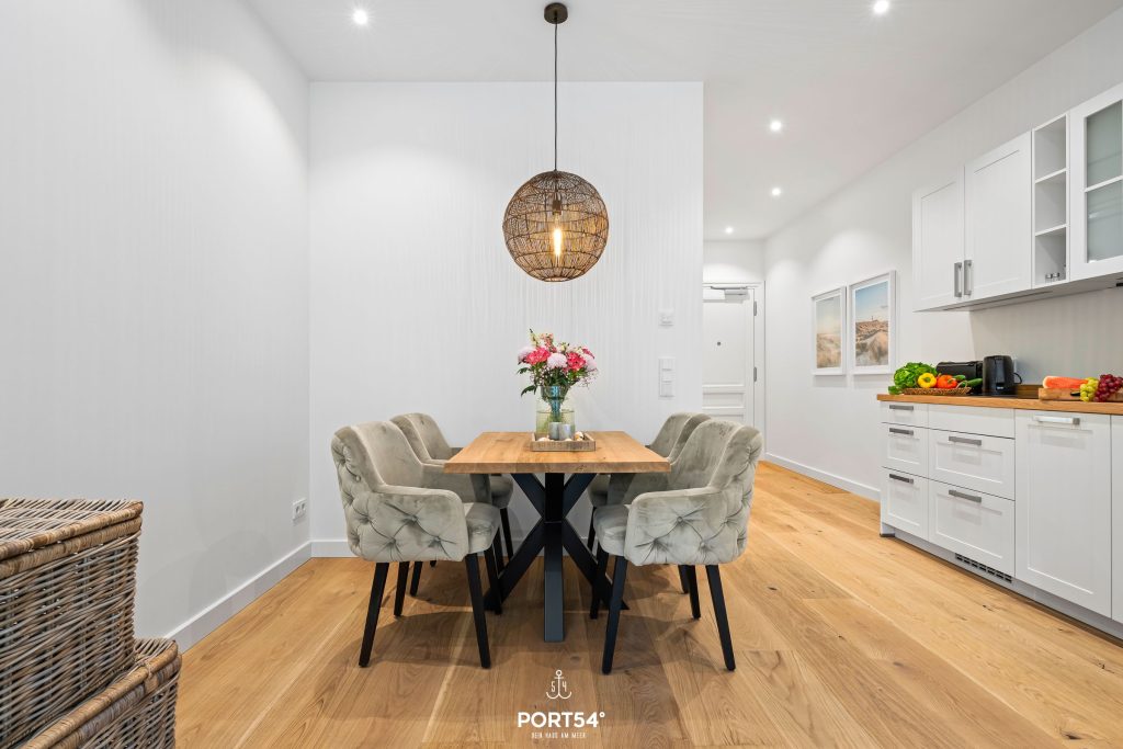 Mit einer großzügigen Grundfläche von 43 m² bietet die im Erdgeschoss gelegene Ferienwohnung ausreichend Platz für bis zu vier Personen. Die lichtdurchfluteten Räume sind geschmackvoll eingerichtet, und die offene Küche, die zum Wohnzimmer hin gestaltet ist, lädt dich dazu ein, kulinarische Köstlichkeiten zuzubereiten. Hier findest du alle notwendigen Geräte wie einen Elektroherd mit Induktionskochfeld, einen Backofen, eine Spülmaschine, einen Kühlschrank mit Gefrierfach und vieles mehr. Das Schlafzimmer ist mit einem gemütlichen Doppelbett, Verdunkelungsmöglichkeiten und einem Smart-TV ausgestattet. Einen weiteren Schlafplatz bietet dir die gemütliche Schlafcouch.