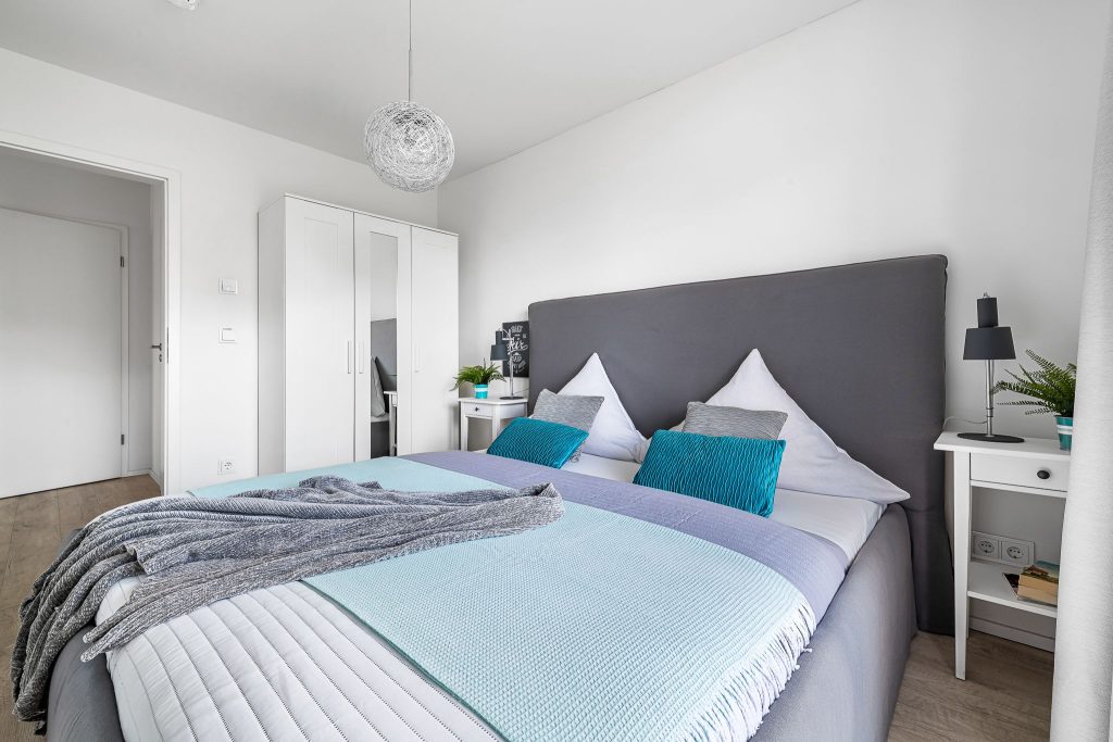 Beide Schlafzimmer sind jeweils mit einem komfortablen Boxspring-Doppelbett (eines 180 × 200 cm, das andere 160 × 200 cm), einem Flachbild-Fernseher und einem Kleiderschrank ausgestattet. Verdunkelungsmöglichkeiten garantieren Dir erholsame Nächte.