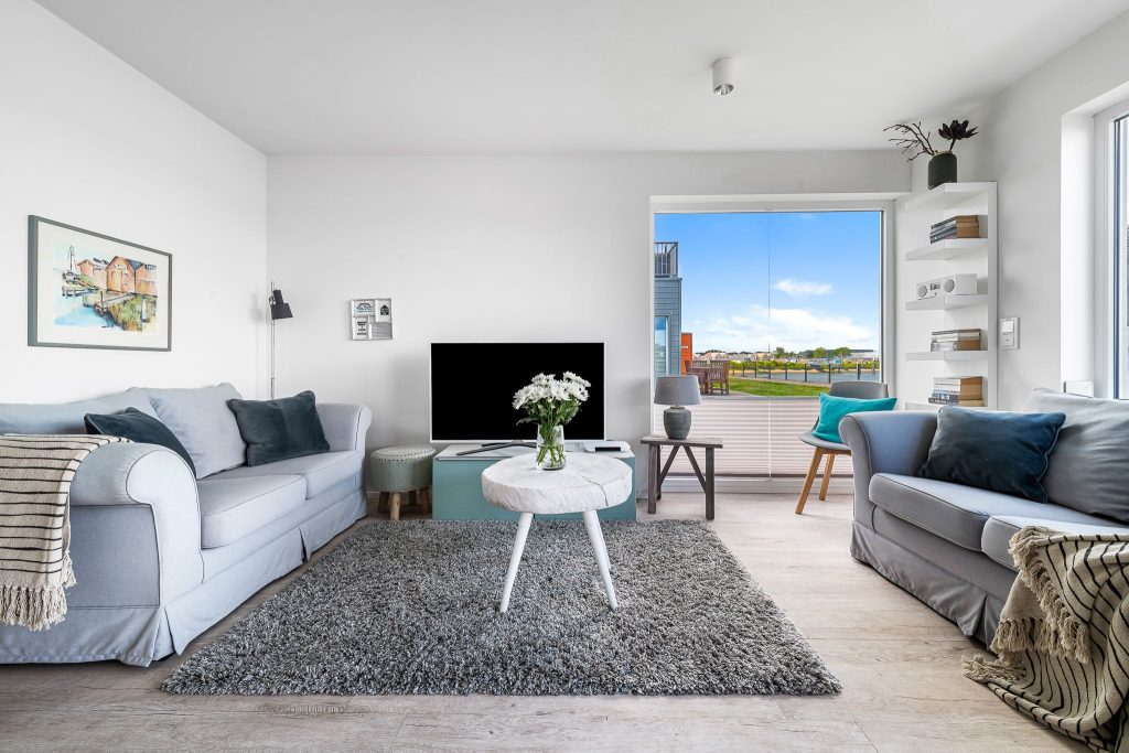 Der Wohnbereich lädt Dich zum Verweilen ein – mache es Dir auf dem bequemen Sofa gemütlich und genieße Deine Lieblingsserie auf dem Flachbild-TV.
