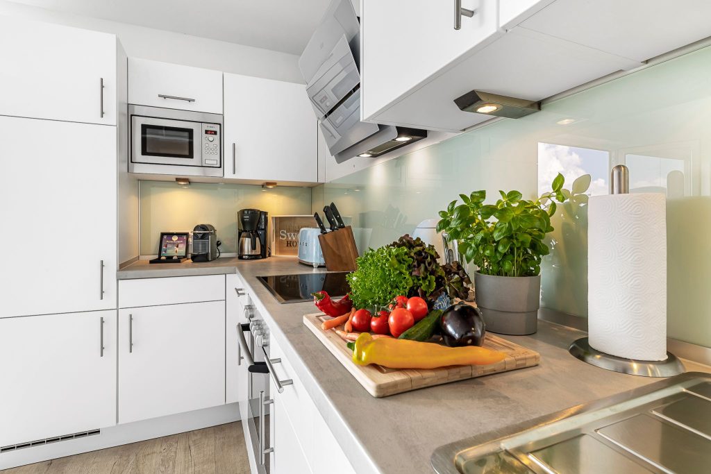 In der voll ausgestatteten Küche kannst Du nach Herzenslust köstliche Gerichte zaubern und dabei gemeinsame Kochabende mit Deinen Liebsten genießen.