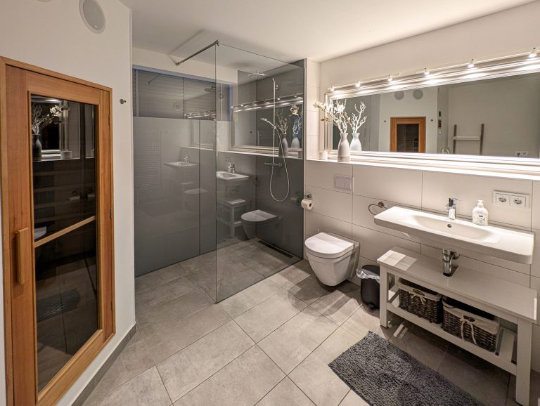 Im Badezimmer erwartet Dich ein wahres Wellness-Paradies – neben einer begehbaren Dusche findest Du hier auch einen Handtuchtrockner, einen Föhn und das Highlight: eine Infrarot-Sauna. Gönne Dir entspannende Momente und entfliehe dem Alltagsstress.