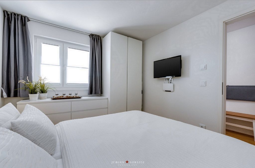Diese moderne Wohnung hat einiges zu bieten – einen offenen Wohn-/Essbereich, ein kuscheliges Schlafzimmer, ein modernes Badezimmer sowie einen Balkon mit einem Wasserblick, der einfach unvergesslich ist!