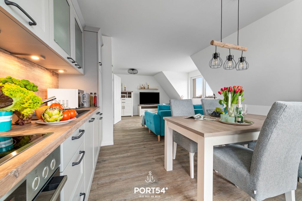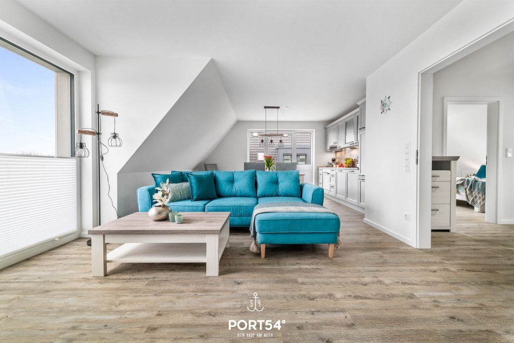Der Wohnbereich ist offen und freundlich gestaltet. Die Küche ist zum Wohnzimmer hin geöffnet und fügt sich harmonisch in den Aufenthaltsbereich ein. Hier findest Du Sofa, Sofaecke, Sessel, Essbereich und Esstisch für gemütliche Stunden.