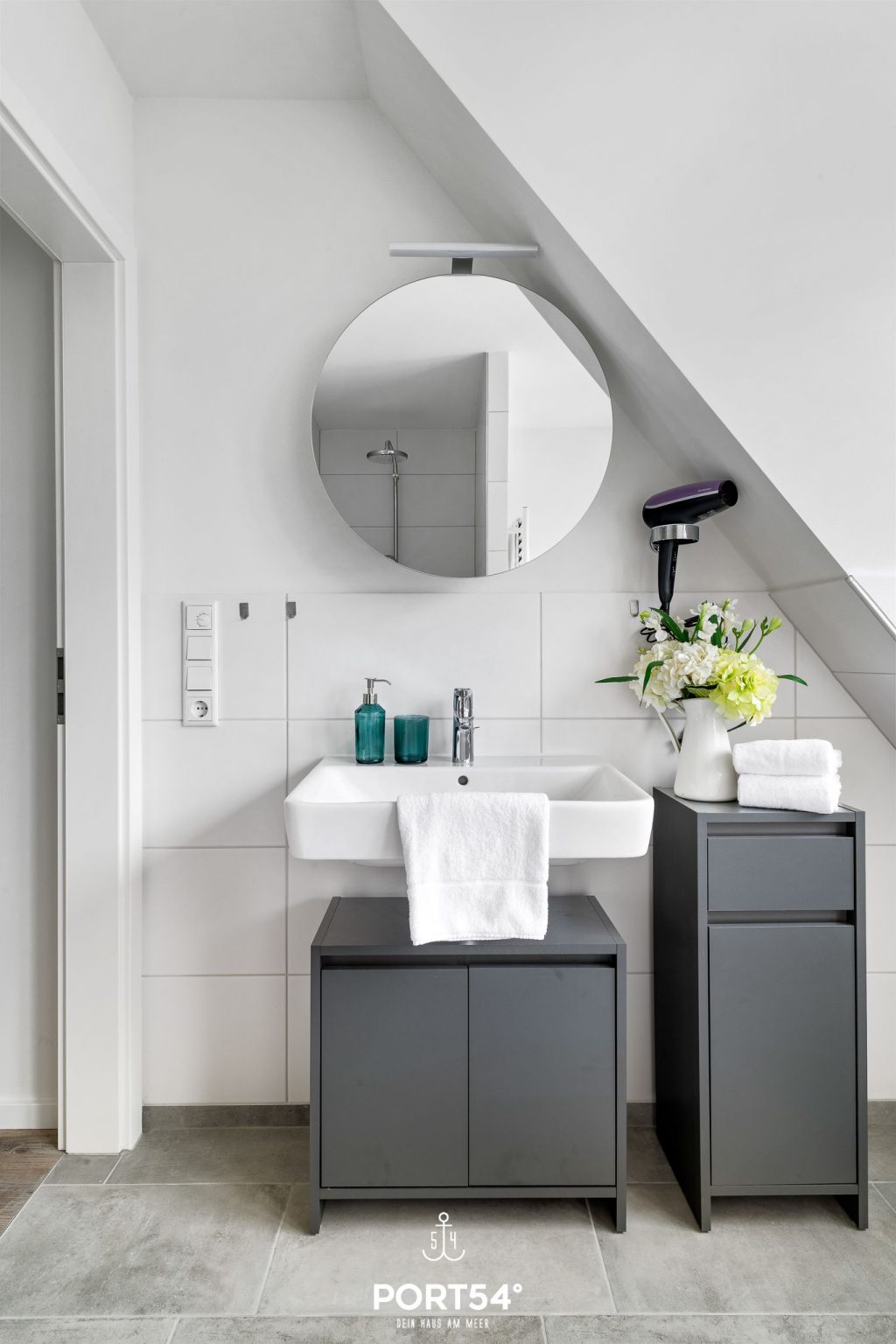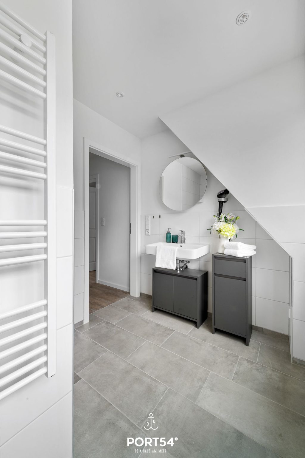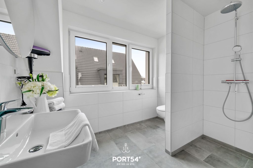 Das Badezimmer ist modern eingerichtet mit bodengleicher Dusche, Waschbecken, WC, Spiegel, Fenster und Haartrockner. Warmwasser ist selbstverständlich vorhanden. Die Zentralheizung sorgt auch an kühleren Tagen für ein angenehmes Wohnklima.