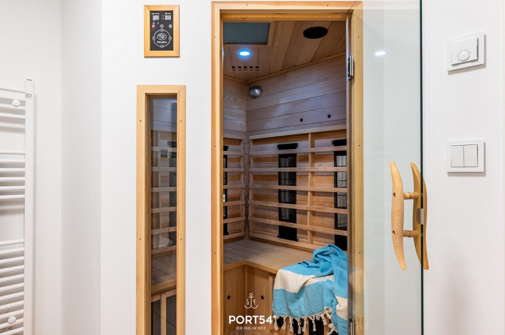 In dem einen Badezimmer erwartet Dich eine Badewanne, in der Du Dich bei einem Schaumbad herrlich vom Stress erholen kannst. Das zweite Badezimmer vervollständigt Dein Wellnessprogramm mit einer Infrarot-Sauna und einer ebenerdigen Dusche.