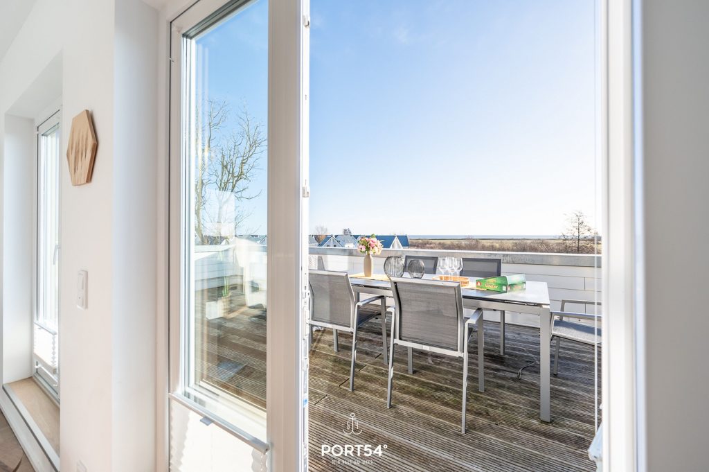 Die großzügige Dachterrasse ist das absolute Highlight. Hier hast Du einen hervorragenden Blick in die Natur und auf die Ostsee.