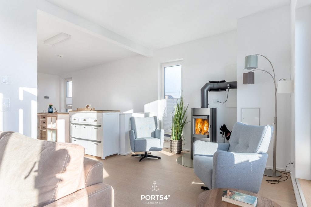 Der knisternde Kamin spendet Dir an pustigen „Schietwetter“-Tagen eine wohlige Wärme.