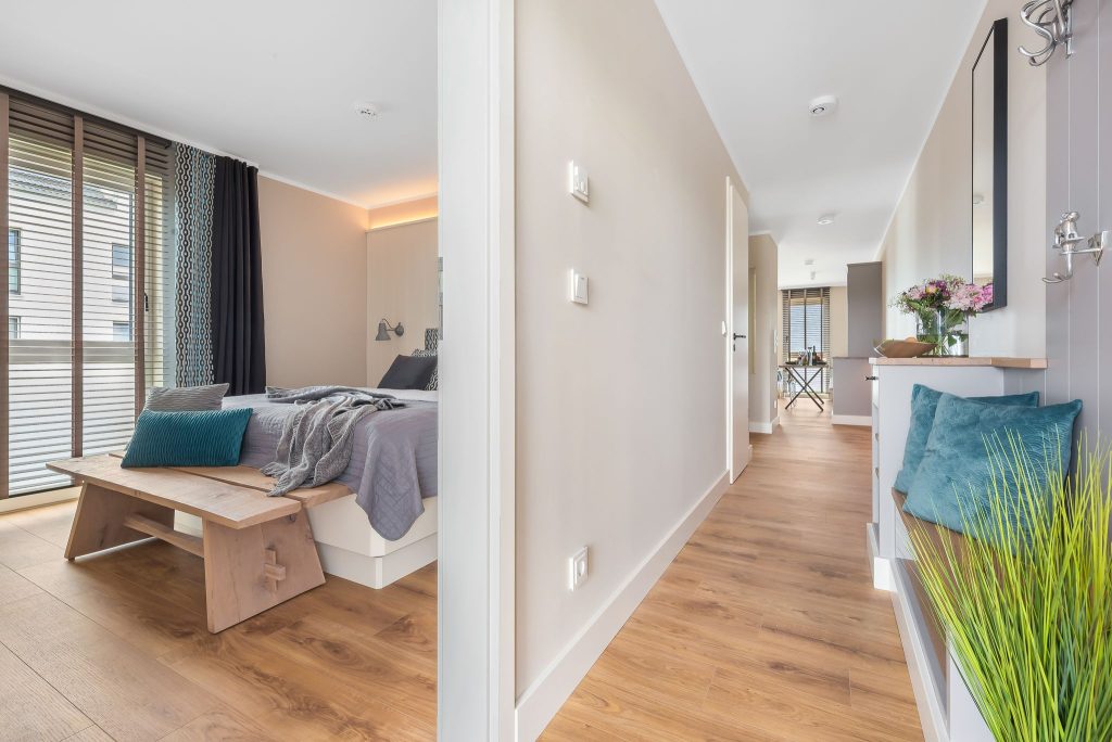 Zudem verfügt die Wohnung über Paneele an den Wänden mit integrierter und indirekter Beleuchtung für die Nächte, die Dich zu einer angenehmen Atmosphäre zum Wohlfühlen einladen.