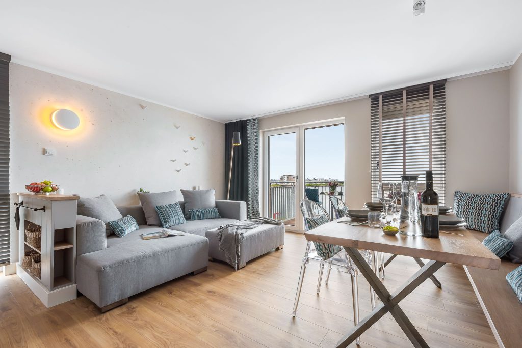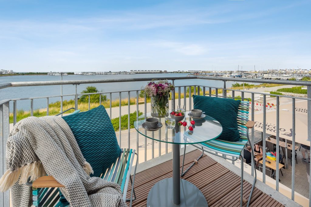 Der Blick fällt durch bodentiefe Fenster und vom Balkon aus auf die Marina und die schwimmenden Häuser. Segelboote, Möwen und wunderschöne Sonnenuntergänge garantieren Dir wahres Urlaubsfeeling.
